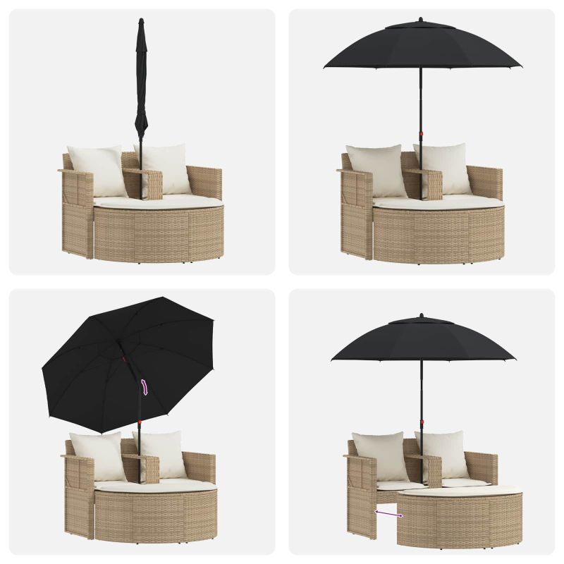 Релаксирайте стилно с този модерен градински диван, табуретка и чадър, проектирани да превърнат вашето открито пространство в удобно и елегантно кътче. Той съчетава минималистичен дизайн с практичност, което го прави идеалният избор за всеки, който търси простота и комфорт. Красивият барелеф от полиратан и полиестер гарантира дълготрайност и уникален стил. Представете си как релаксирате с приятели или просто се наслаждавате на тишината в градината с удобните възглавници и защитаващия чадър. Строеж от полиратан: Издръжливият полиратан осигурява дълго време ползване и запазва елегантния си вид. UV-устойчив, той е идеален за външни мебели и прекрасно допълва вашата градина. Регулируем чадър: Чадърът с механизъм за накланяне осигурява необходимата сянка, позволявайки на потребителите да го настройват според нуждите им за комфорт. Независимо дали четете книга или имате гости, той осигурява защита от пряка слънчева светлина. Свалящи се възглавници за гърба: С удобен цип, възглавниците са лесни за сваляне и почистване. Този практичен детайл помага вашите градински мебели да останат свежи. Всяка възглавница предлага комфорт и опора, за да можете да се отпуснете на пълни обороти. Модерен стил: Чистите линии и минималистичният дизайн на градинския диван осигуряват съвременен вид, идеален за всякакви открити пространства. Удобството не жертва стил и естетика. Грижа и поддръжка: Препоръчва се покриване на мебелите, когато не се използват, за да се защитят от времето. Това помага да запазите красивия им вид и дълготрайността през всички сезони.