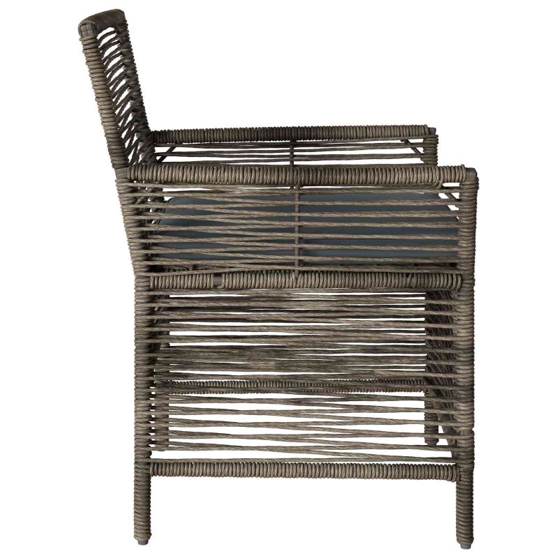 Този стол от полиратан е идеален за открито. Със съвременен и универсален дизайн, съчетава здрави материали, подходящи за градина или патио. Дишащата облегалка позволява добър въздушен поток, а устойчивата конструкция издържа на слънце и дъжд. Стилът и функциите му правят отличен избор за всяко открито пространство. Конструкция от полиратан Градинският диван е от полиратан, с естествена, плетена визия, която подхожда на всяко открито място. Материалът е подходящ за външна употреба и помага на мебелите да запазят визията си дори при променливи метеорологични условия. Стоманена рамка с покритие Стоманената рамка с прахово покритие осигурява стабилност и дълготрайност. Покритията предпазват от влага и износване, създавайки чист и семпъл вид. Материали, устойчиви на времето Продуктът е проектиран с материали, които оцеляват на време, позволявайки му да се справя с изложение на слънце и дъжд. Дизайнът отправя комфорт към използването му в открити пространства. Дишаща облегалка Облегалката позволява въздушен поток, осигурявайки комфорт в топлото време. Нейната конструкция осигурява естествена вентилация, което прави сядането приятно. Лесна поддръжка За лесна поддръжка покривайте стола с водоустойчиво покритие, когато не го ползвате. Почистването с влажна кърпа е достатъчно, а свалящите се калъфки за възглавници правят поддръжката още по-лесна.