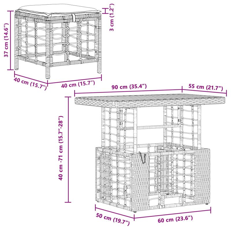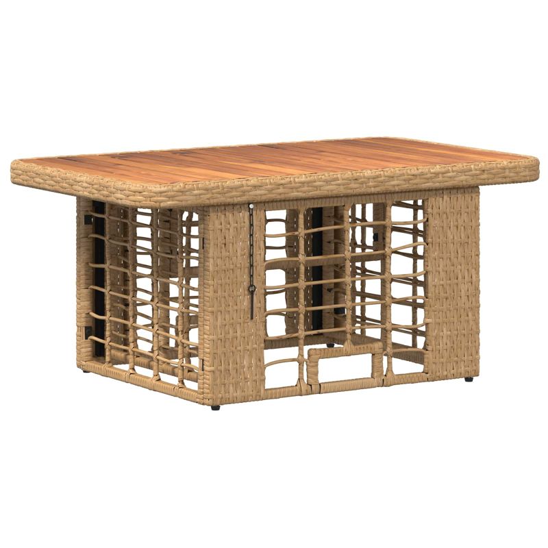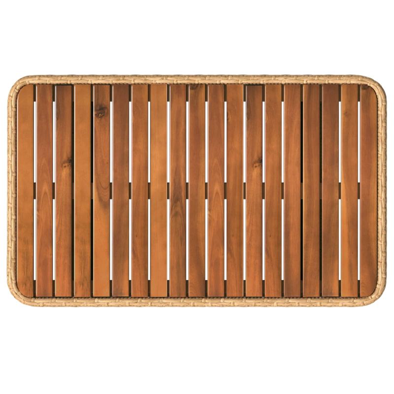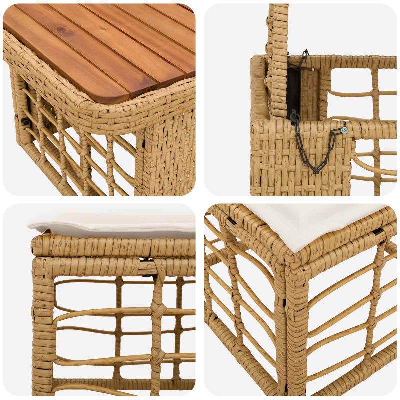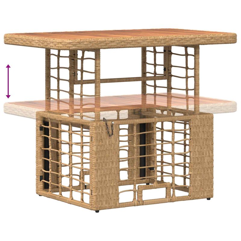 Този модерен градински обяден комплект съчетава селска елегантност с издръжлива конструкция, перфектен за вашите открити вечери. Проектиран е с внимание, включвайки полиратан и масивна акациева дървина, които допълват всяко градинско пространство. Неговият естествен вид и съвременен дизайн канят семейството и приятелите ви да се съберат, създавайки идеално място за бранчове, спокойни вечери или празници на открито. Омаслен завършек: Този завършек придава не само визуална привлекателност, но и защита. Той подчертава естествените тонове на акациевата дървесина и осигурява устойчивост на влага, така че да издържа на различни условия. Плюшеното покритие добавя елегантност, която остава непокътната с времето. Регулируема маса: Настройката на височината на масата предлага комфорт на хора с различен ръст. Регулируемата функция е лесна за употреба и предлага гъвкавост, възможно е да се ползва за всичко – от шведска маса до спокойна вечеря. Устойчиви материали: Изработен от полиратан и акациева дървесина, комплектът е проектиран да устой на неблагоприятни условия. Полиратанът предотвратява избледняването от UV лъчи, а акациевата дървесина е устойчива на влага. Удобство за сядане: Оснащен с полиестерови възглавници, които лесно се свалят и перат. Тези дишащи възглавници осигуряват удобство, така че дори дългите събирания да са приятни. Лесна поддръжка: Просто избършете с влажна кърпа, за да поддържате комплекта в безупречно състояние. Омасленият завършек помага да се отклони влагата, улеснявайки почистването и поддръжката.