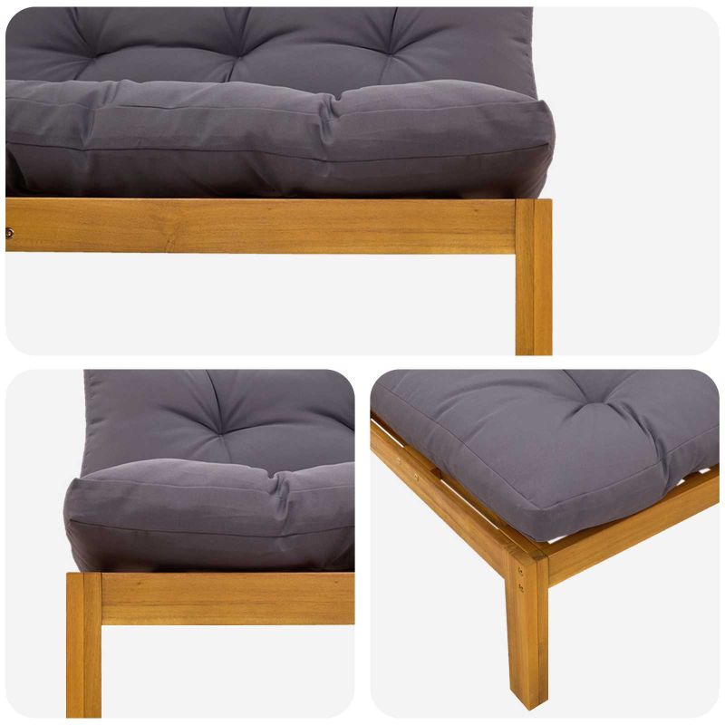 Този мебелен комплект носи рустикален чар, направен е от здраво акациева дървесина и е идеален за градината, терасата или трапезарията. Неговата естествена красота се съчетава с разнообразни стилове, осигурявайки уютна атмосфера за весели семейни вечери или интимни срещи в градината. Съчетава функционалност и елегантност, подчертавайки комфорта и издръжливостта, подходящ за всяко пространство. Премиум акациева дървесина: Комплектът е направен от акациева дървесина, известна с уникалните си летви и естествената устойчивост на атмосферни условия. Структурата осигурява стабилност в ежедневна употреба, а гладкото покритие предава рустикална елегантност, идеална за интериорите и екстериорите. Издръжливи компоненти: Комплектът включва единична възглавница за пейка с пяна, която предлага допълнителен комфорт. Леката пяна е удобна за носене, докато остава здрава и поддържа тялото. Дизайнът предлага удобно настаняване, независимо дали е за брънчове в градината или уютни вечери. Уникални характеристики: С рустикален дизайн, краката осигуряват стабилност за разнообразни сценарии. Проектиран е с плоски подлакътници и завършен фон, стилът е функционален и изтънчен, предлагайки комфорт и визуални привлекателности, които се съчетават с вашия домашен интериор. Многофункционална употреба: Идеален за пролетни и летни събирания, този комплект преходно преминава между градински партита, терасово релаксиране и трапезни ритуали. Устойчивостта на времето гарантира дълготрайност на открито, предлагайки универсално решение за вашите нужди за настаняване. Поддръжка и грижа: За да удължите живота на този комплект от акациева дървесина, просто избърсвайте повърхностите с влажна кърпа, за да премахнете праха. Устойчивият му дизайн улеснява поддръжката, а правилното обслужване гарантира, че вашата мебел ще остава ценна част от дома ви години наред.