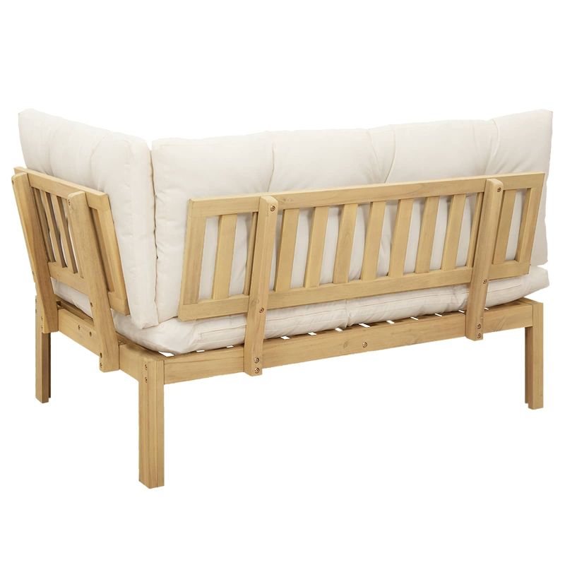 Този мебелен комплект носи рустикален чар, направен е от здраво акациева дървесина и е идеален за градината, терасата или трапезарията. Неговата естествена красота се съчетава с разнообразни стилове, осигурявайки уютна атмосфера за весели семейни вечери или интимни срещи в градината. Съчетава функционалност и елегантност, подчертавайки комфорта и издръжливостта, подходящ за всяко пространство. Премиум акациева дървесина: Комплектът е направен от акациева дървесина, известна с уникалните си летви и естествената устойчивост на атмосферни условия. Структурата осигурява стабилност в ежедневна употреба, а гладкото покритие предава рустикална елегантност, идеална за интериорите и екстериорите. Издръжливи компоненти: Комплектът включва единична възглавница за пейка с пяна, която предлага допълнителен комфорт. Леката пяна е удобна за носене, докато остава здрава и поддържа тялото. Дизайнът предлага удобно настаняване, независимо дали е за брънчове в градината или уютни вечери. Уникални характеристики: С рустикален дизайн, краката осигуряват стабилност за разнообразни сценарии. Проектиран е с плоски подлакътници и завършен фон, стилът е функционален и изтънчен, предлагайки комфорт и визуални привлекателности, които се съчетават с вашия домашен интериор. Многофункционална употреба: Идеален за пролетни и летни събирания, този комплект преходно преминава между градински партита, терасово релаксиране и трапезни ритуали. Устойчивостта на времето гарантира дълготрайност на открито, предлагайки универсално решение за вашите нужди за настаняване. Поддръжка и грижа: За да удължите живота на този комплект от акациева дървесина, просто избърсвайте повърхностите с влажна кърпа, за да премахнете праха. Устойчивият му дизайн улеснява поддръжката, а правилното обслужване гарантира, че вашата мебел ще остава ценна част от дома ви години наред.