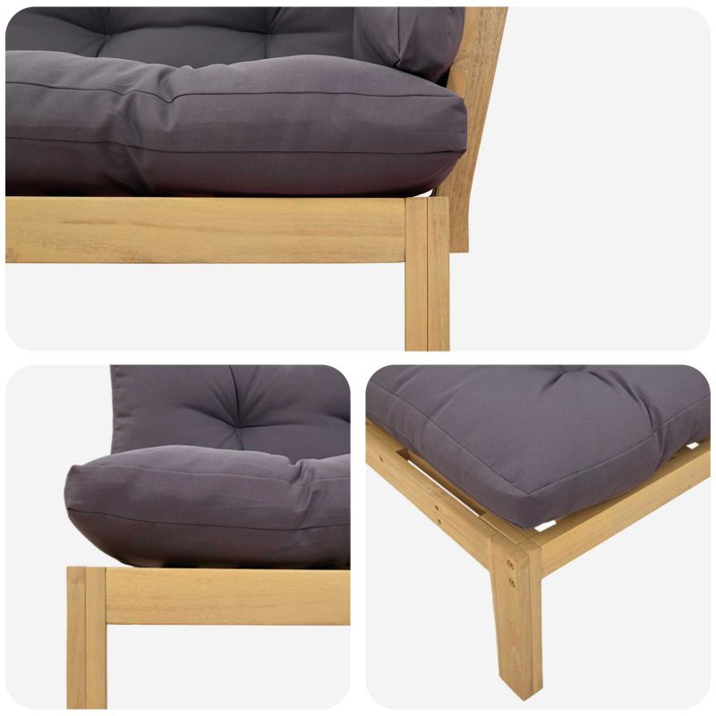 Този мебелен комплект носи рустикален чар, направен е от здраво акациева дървесина и е идеален за градината, терасата или трапезарията. Неговата естествена красота се съчетава с разнообразни стилове, осигурявайки уютна атмосфера за весели семейни вечери или интимни срещи в градината. Съчетава функционалност и елегантност, подчертавайки комфорта и издръжливостта, подходящ за всяко пространство. Премиум акациева дървесина: Комплектът е направен от акациева дървесина, известна с уникалните си летви и естествената устойчивост на атмосферни условия. Структурата осигурява стабилност в ежедневна употреба, а гладкото покритие предава рустикална елегантност, идеална за интериорите и екстериорите. Издръжливи компоненти: Комплектът включва единична възглавница за пейка с пяна, която предлага допълнителен комфорт. Леката пяна е удобна за носене, докато остава здрава и поддържа тялото. Дизайнът предлага удобно настаняване, независимо дали е за брънчове в градината или уютни вечери. Уникални характеристики: С рустикален дизайн, краката осигуряват стабилност за разнообразни сценарии. Проектиран е с плоски подлакътници и завършен фон, стилът е функционален и изтънчен, предлагайки комфорт и визуални привлекателности, които се съчетават с вашия домашен интериор. Многофункционална употреба: Идеален за пролетни и летни събирания, този комплект преходно преминава между градински партита, терасово релаксиране и трапезни ритуали. Устойчивостта на времето гарантира дълготрайност на открито, предлагайки универсално решение за вашите нужди за настаняване. Поддръжка и грижа: За да удължите живота на този комплект от акациева дървесина, просто избърсвайте повърхностите с влажна кърпа, за да премахнете праха. Устойчивият му дизайн улеснява поддръжката, а правилното обслужване гарантира, че вашата мебел ще остава ценна част от дома ви години наред.