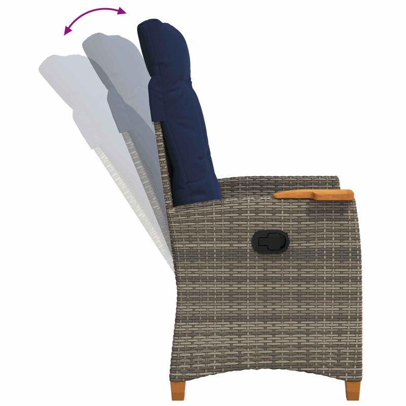 Този модерен recliner стол е стилно допълнение за всеки открит кът. Комбинира функционалност с елегантен дизайн, идеален за градината. Позволява на потребителите да се насладят на природата, докато се радват на модерните линии. Черната прахова стомана много добре допълва ратановото покритие, създавайки красив контраст. Със своята регулируема облегалка, столът осигурява комфорт, подходящ за релаксация или социални срещи. Регулируема облегалка: Открий гъвкавост с ръчно регулируемата облегалка, проектирана за персонализиран комфорт. Просто я настрои на ръка за четене, релаксация или умиротворение на открито. Интегрирана маса: Столът предлага удобна повърхност за напитки, книги или очила. Всичко е под ръка, за да се насладиш на времето си на открито. Устойчив на времето ратан: Столът е изграден да устоява на лошо време с UV защитен ратан. Можеш да бъдеш спокоен, че столът ще изглежда добре и ще е здрав през всички сезони. Двойно облицована възглавница: Наслади се на мекотата на възглавницата, която е плътна с пяна и не се плъзга. Свалящата се възглавница е не само луксозна, но и лесна за поддръжка. Лесна поддръжка: Просто го избърсвай с влажна кърпа; така ще остане свеж с малко усилия, за да можеш да се концентрираш на удоволствието от откритото.