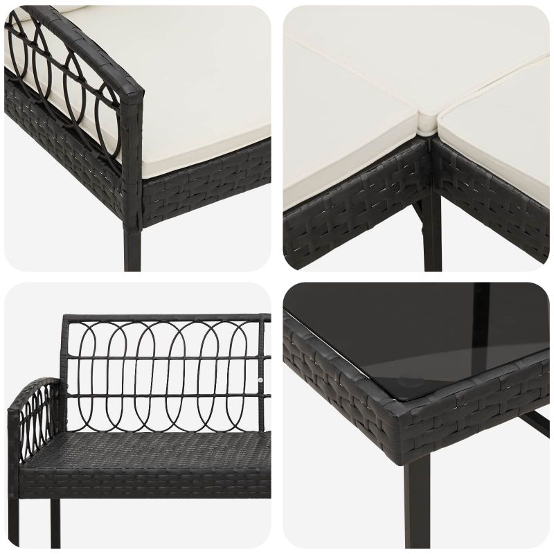 Начало Дом и градина Мебели Външни мебели Комплекти градински мебели Градински Софа Комплект с възглавница 2 pcs Черен и кремав