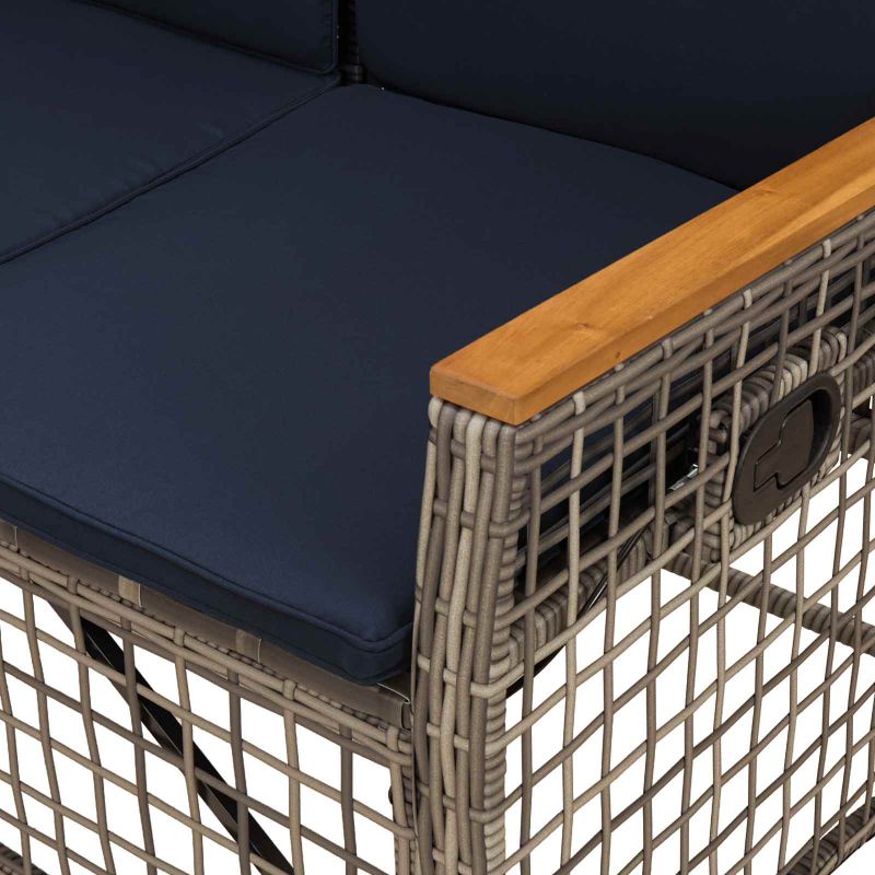 Този модерен комплект градински reclining диван е създаден, за да подобри комфорта на открито. С простота и елегантност, той е идеален за релаксация на тераси и в градини. Практичният му дизайн с изчистени линии създава приятно и спокойно открито пространство, където да се отдъхнете и развлекете. Ратан и стомана в комбинация: Структурата е направена от полиратан и прахово боядисана стомана, съчетавайки модерен вид с издръжливост. Тази комбинация предлага стабилна основа, устойчиво на различни метеорологични условия, което я прави идеална за целогодишно използване на открито. Reclining облегалки: Диванът е проектиран за комфорт, с две reclining облегалки, които могат да се настройват според вашите нужди. Независимо дали четете, обядвате или просто взимате кратка дрямка, ръчната настройка ви дава контрол над позицията. Възглавници с цип: Включва готини възглавници за сядане и опора с цип, осигурявайки комфорт и лесна поддръжка. Пената добавя мекота, създавайки уютно пространство за релакс и развлечения. Устойчиви на времето функции: Дизайнът на дивана е създаден за външни условия, с UV и метеорологично устойчиви функции, така че да запази формата си при всяка ситуация. Стилни подлакътници: С плоски ратанови ръбове, които играят роля и на декоративни елементи, те подчертават чистите линии на конструкцията и добавят към минималистичния чар на дивана, който се съчетава с всякакви градински пространства.