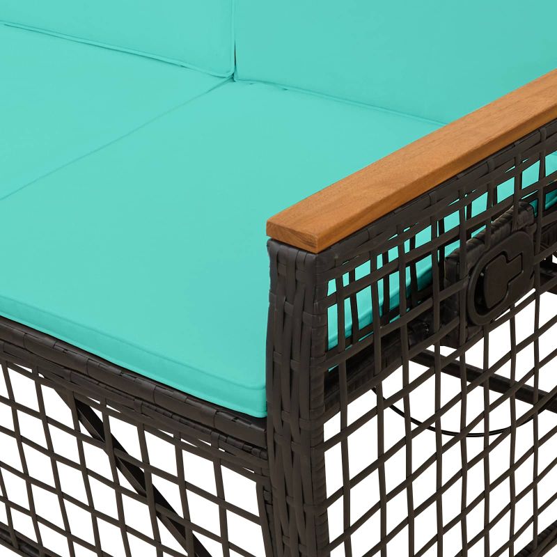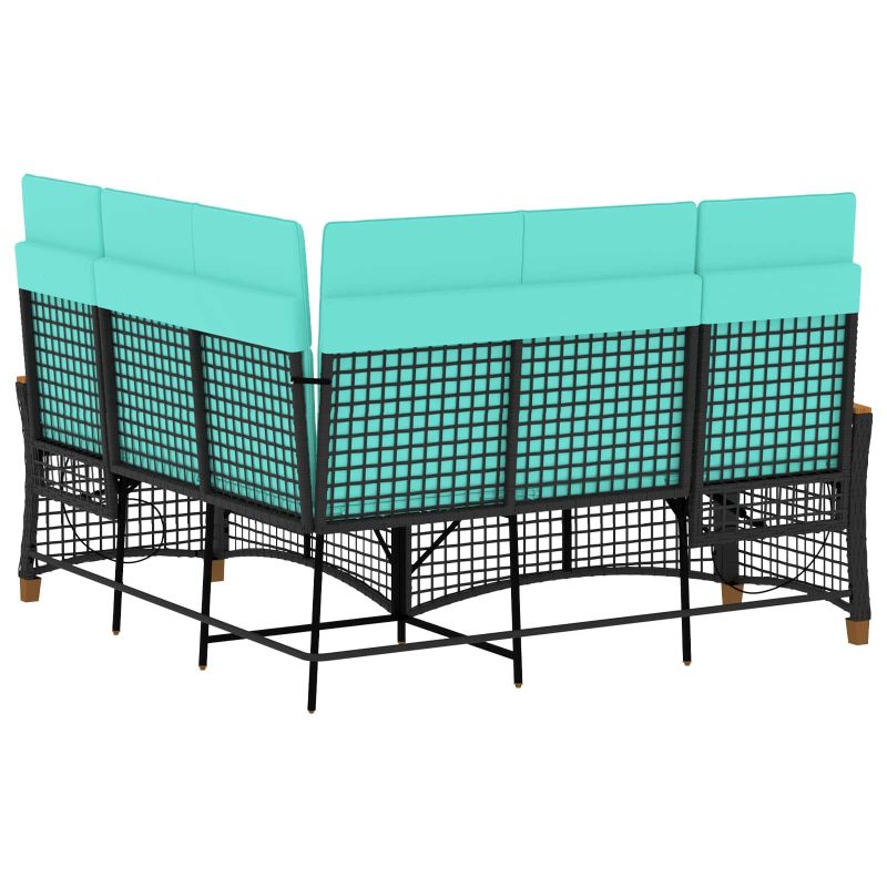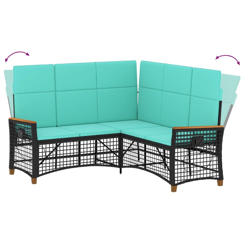 Комплект градински диван с функция на легло Черен и Туркоаз