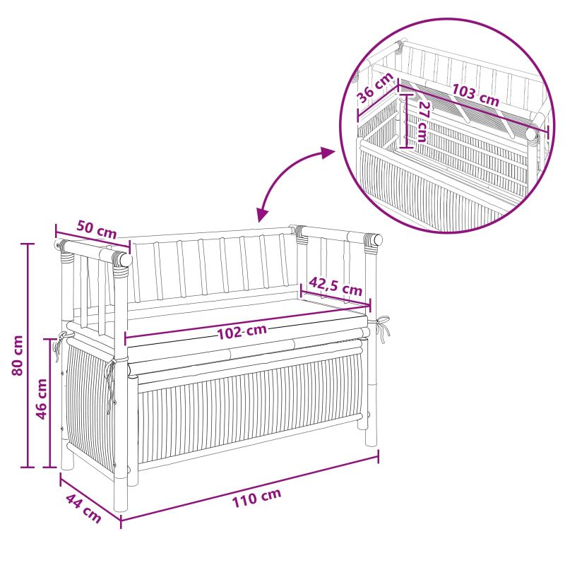 Градинска Пейка за Съхранение Естествен 110 x 47 x 80 см Бамбук