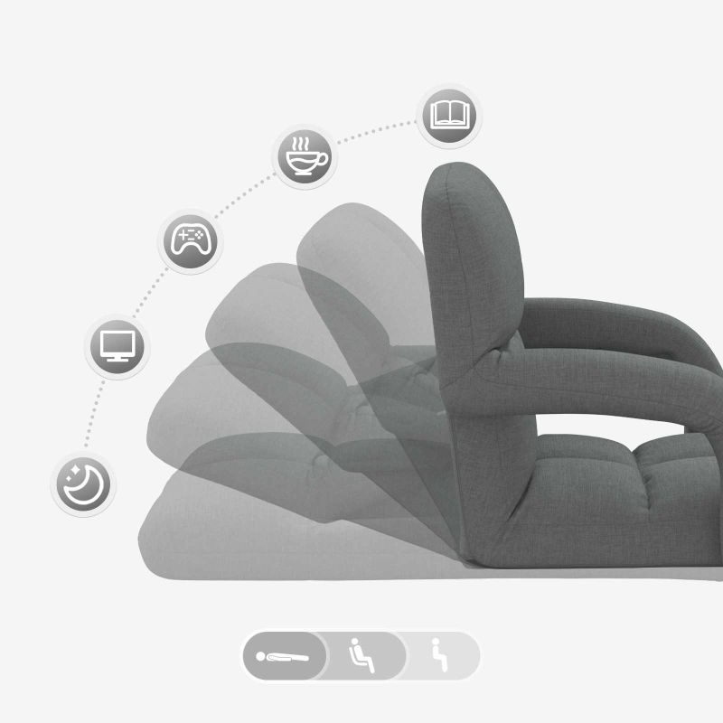 Този подов стол е супер удобен и практичен, а дизайнът му е компактен. Може да регулирате облегалката в 5 позиции и така да намерите идеалния ъгъл за игри, четене или просто за релакс. Меката възглавница в него осигурява комфорт, което го прави идеален за модерните домове. Мек и удобен стол: Този подов стол е проектиран за комфорт и предлага нежна опора за всекидневна употреба. Перфектен е за игри, четене или просто хлабаве. Регулируема облегалка: Столът има 5 позиции за облегалка, лесно можете да сменяте ъглите на сядане. От облегалка до напълно легнало положение, всеки може да намери удобната си позиция. Здрава метална конструкция: Изграден с як метал, този стол осигурява надеждност и дълготрайност за_daily_use. Разнообразно приложение: Този подов стол е идеален за много неща. Перфектен е за игри, така че може да седите удобно, докато играете, гледате телевизия или просто се отпуснете. Мултифункционалният му дизайн е супер за хола, спалнята или кътовете за отдих. Поддръжка: Лесно поддържан, просто го избършете с суха кърпа, за да поддържате свежия му вид. С минимални усилия, той остава практичен и здрав стол за ежедневна употреба.