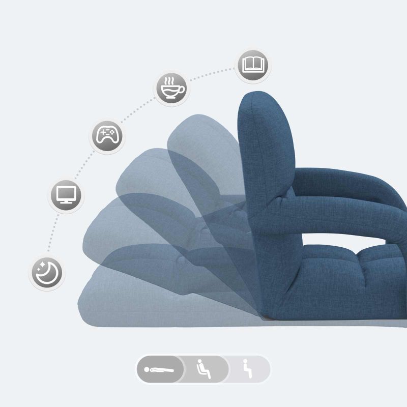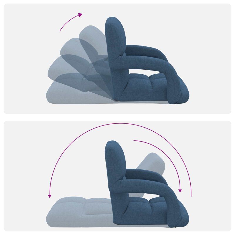 Този подов стол е супер удобен и практичен, а дизайнът му е компактен. Може да регулирате облегалката в 5 позиции и така да намерите идеалния ъгъл за игри, четене или просто за релакс. Меката възглавница в него осигурява комфорт, което го прави идеален за модерните домове. Мек и удобен стол: Този подов стол е проектиран за комфорт и предлага нежна опора за всекидневна употреба. Перфектен е за игри, четене или просто хлабаве. Регулируема облегалка: Столът има 5 позиции за облегалка, лесно можете да сменяте ъглите на сядане. От облегалка до напълно легнало положение, всеки може да намери удобната си позиция. Здрава метална конструкция: Изграден с як метал, този стол осигурява надеждност и дълготрайност за_daily_use. Разнообразно приложение: Този подов стол е идеален за много неща. Перфектен е за игри, така че може да седите удобно, докато играете, гледате телевизия или просто се отпуснете. Мултифункционалният му дизайн е супер за хола, спалнята или кътовете за отдих. Поддръжка: Лесно поддържан, просто го избършете с суха кърпа, за да поддържате свежия му вид. С минимални усилия, той остава практичен и здрав стол за ежедневна употреба.