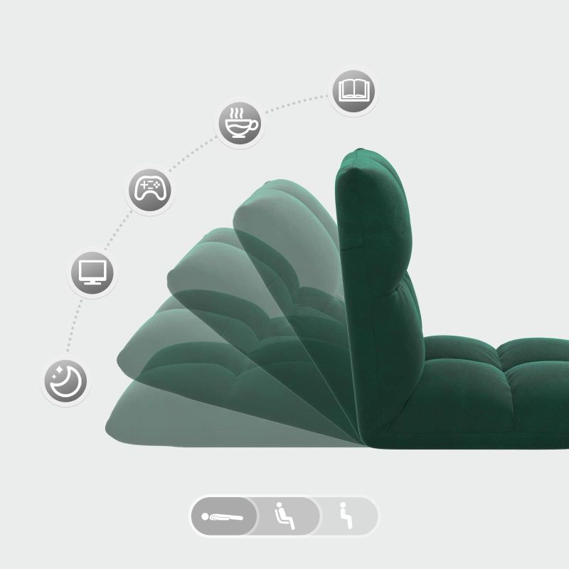 Този стилен подов стол с модерен дизайн е перфектен за всяка стая. С минималистичния си вид и чисти линии, той допълва всяко пространство. Регулируемите функции му позволяват да се адаптира към нуждите на потребителя, независимо дали четете, играете или просто се почивате. Кадифена тапицерия: Луксозният материал дава на стола мека повърхност и комфорт. Кадифето е елегантно и приятно на допир, добавя нотка на стил дори в неформални обстановки. Издържлива метална рамка: Смело проектирана, металната конструкция гарантира стабилност и дълготрайност, а кадифената тапицерия осигурява комфорт и стил. Тази комбинация предлага здравина и шикозен вид. Регулируема облегалка: С 5 настройки на облегалката, столът позволява персонализиране на усещането за комфорт, независимо дали сте в настроение за четене или просто се отпускате. Сгъваем дизайн: Лесно се сгъва и прилага, когато не се използва. Перфектен за малки пространства или за многофункционални стаи. Лесни инструкции за поддръжка: Просто избършете с кърпа, за да се отървете от праха и да поддържате стола привлекателен. Редовната грижа запазва яркостта на дизайна.