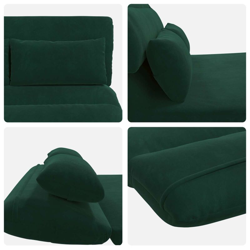 Този стилен модерен подов стол без проблеми се съчетава със съвременните жилищни пространства благодарение на своя опростен дизайн и функционални характеристики. Предлага многофункционалност в всекидневните и спалните. С елегантните си линии и велурено покритие, той е идеален избор за хора, които искат както комфорт, така и стил. Материали: Изработен от луксозен велур, този подов стол излъчва модерен стил с мекото си покритие, което добавя елегантност в интериора ви. Велурът е също така издръжлив, осигуряващ дълготрайно използване, без да губи привлекателността си, идеален за вътрешна употреба през всичките сезони. Включени компоненти: Столът разполага с метална конструкция, здрава за ежедневна употреба, а регулируемата облегалка позволява на потребителите да намерят своя идеален наклон. Пяната осигурява комфорт и подкрепа, за да седите удобно. Всички компоненти заедно създават уютно пространство за релаксация или работа. Функции /дизайн: Облегалката е регулируема до 180 градуса, предлагайки различни позиции на наклон, които са удобни за четене, отдих или сън. Сгъваемият дизайн позволява лесно прибиране, когато не се използва, спестявайки пространство и повишавайки удобството в малките жилища. Препоръчани употреби: Идеален за всекидневни и спални, този подов стол лесно се адаптира към различни среди и дейности. Модерният му стил съответства на разнообразните декорации и го прави подходящ за релаксация и работа. Поддръжка: За да поддържате стола да изглежда добре, просто го избърсвайте с суха кърпа. Избягвайте агресивни химикали, за да запазите мекотата на велура и улесните ежедневната поддръжка.