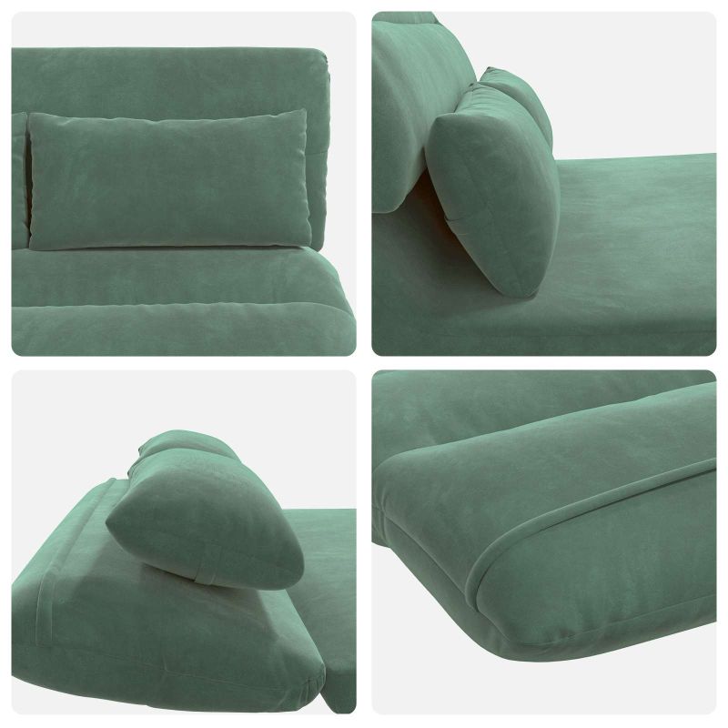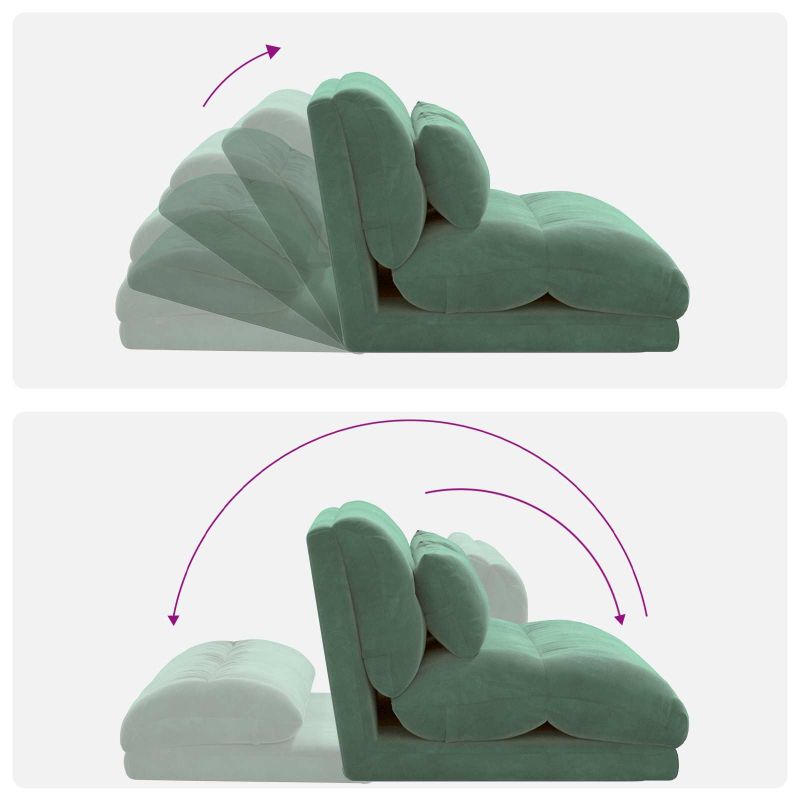 Този стилен модерен подов стол без проблеми се съчетава със съвременните жилищни пространства благодарение на своя опростен дизайн и функционални характеристики. Предлага многофункционалност в всекидневните и спалните. С елегантните си линии и велурено покритие, той е идеален избор за хора, които искат както комфорт, така и стил. Материали: Изработен от луксозен велур, този подов стол излъчва модерен стил с мекото си покритие, което добавя елегантност в интериора ви. Велурът е също така издръжлив, осигуряващ дълготрайно използване, без да губи привлекателността си, идеален за вътрешна употреба през всичките сезони. Включени компоненти: Столът разполага с метална конструкция, здрава за ежедневна употреба, а регулируемата облегалка позволява на потребителите да намерят своя идеален наклон. Пяната осигурява комфорт и подкрепа, за да седите удобно. Всички компоненти заедно създават уютно пространство за релаксация или работа. Функции /дизайн: Облегалката е регулируема до 180 градуса, предлагайки различни позиции на наклон, които са удобни за четене, отдих или сън. Сгъваемият дизайн позволява лесно прибиране, когато не се използва, спестявайки пространство и повишавайки удобството в малките жилища. Препоръчани употреби: Идеален за всекидневни и спални, този подов стол лесно се адаптира към различни среди и дейности. Модерният му стил съответства на разнообразните декорации и го прави подходящ за релаксация и работа. Поддръжка: За да поддържате стола да изглежда добре, просто го избърсвайте с суха кърпа. Избягвайте агресивни химикали, за да запазите мекотата на велура и улесните ежедневната поддръжка.