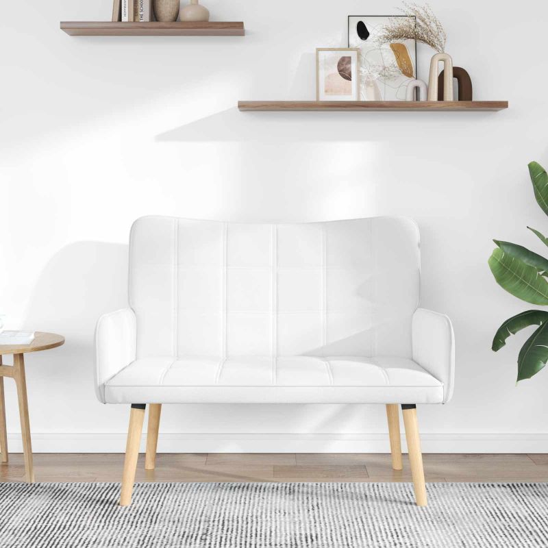 Диван с два места Бял 115 x 61 x 87 см текстил