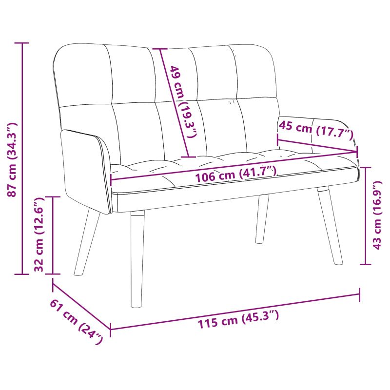 Диван с два места Светлосиво 115 x 61 x 87 см Кадифе