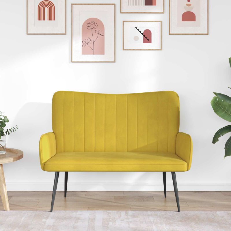 Диван с два места Жълто 115 x 61 x 87 см Кадифе