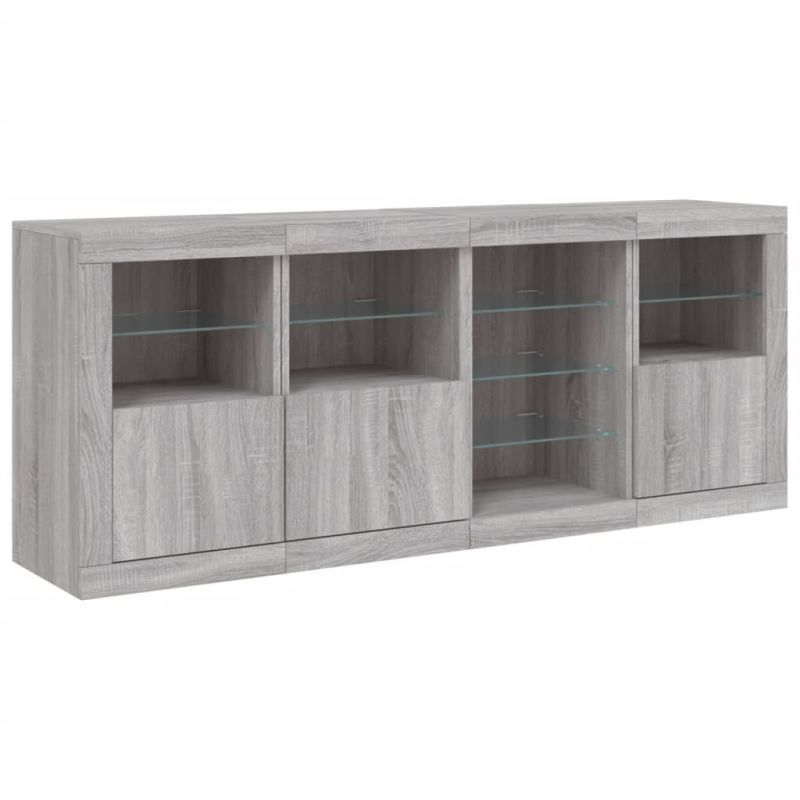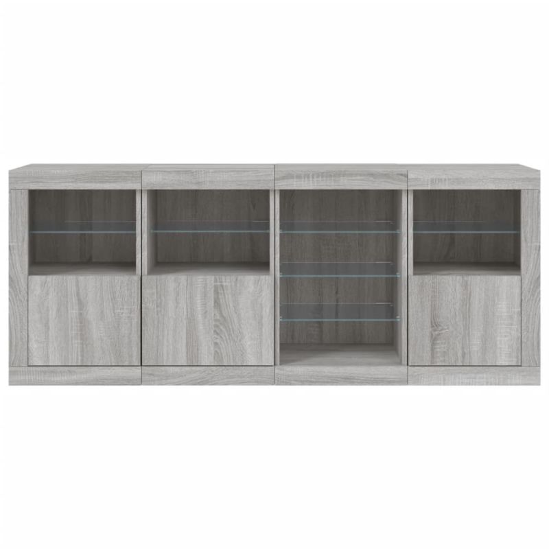 Сайдборд с LED светлини, сив сонома, 164x37x67 см