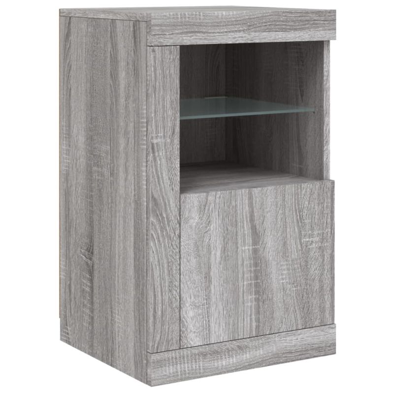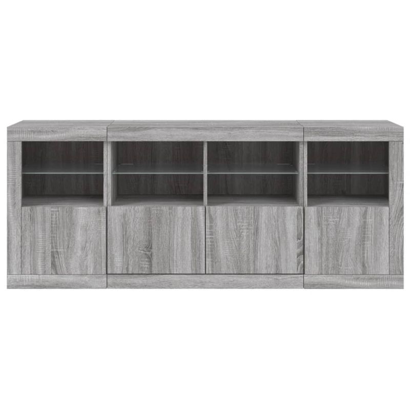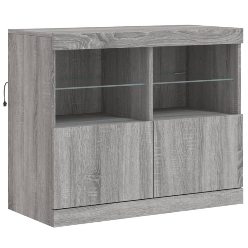 Сайдборд с LED светлини, сив сонома, 163x37x67 см
