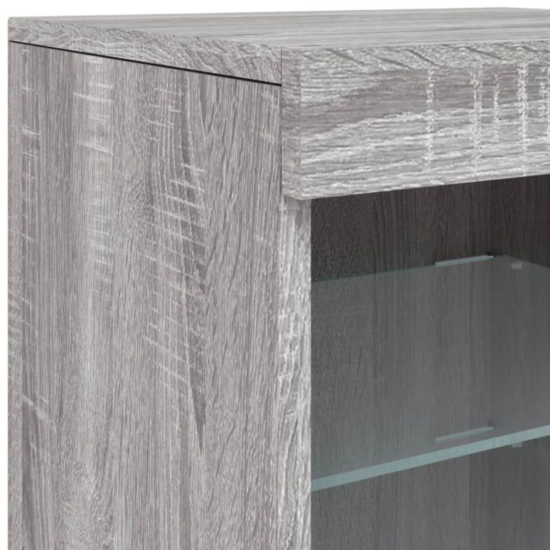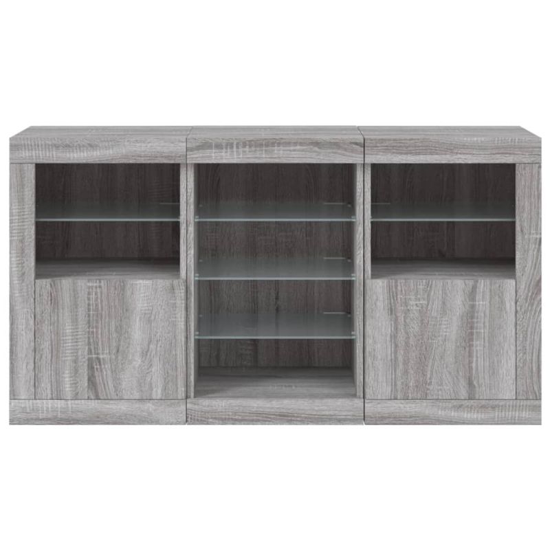 Сайдборд с LED светлини, сив сонома, 123x37x67 см