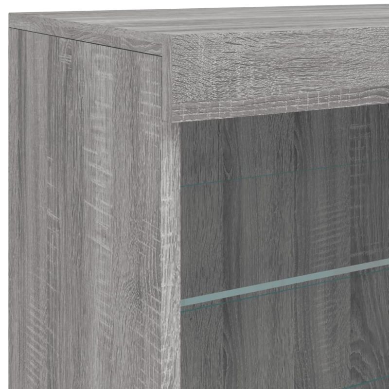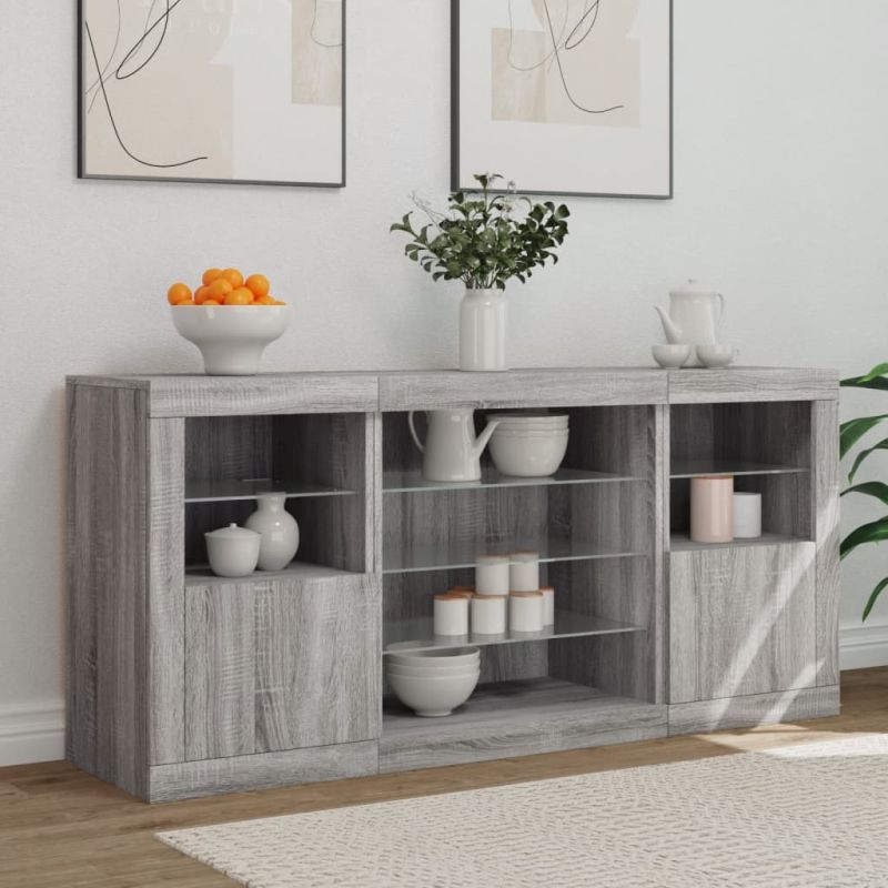 Сайдборд с LED светлини, сив сонома, 142,5x37x67 см
