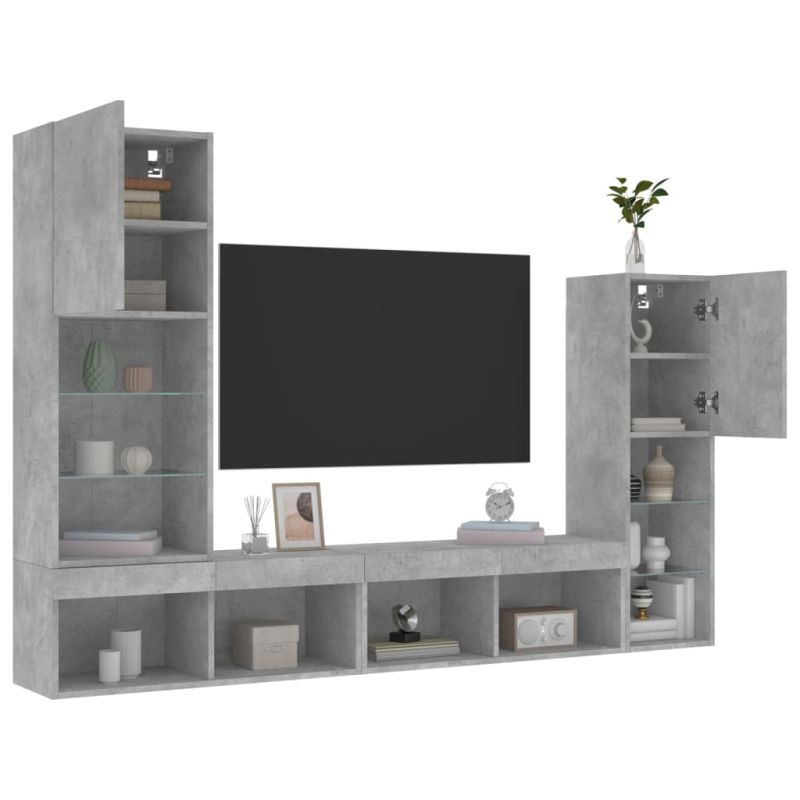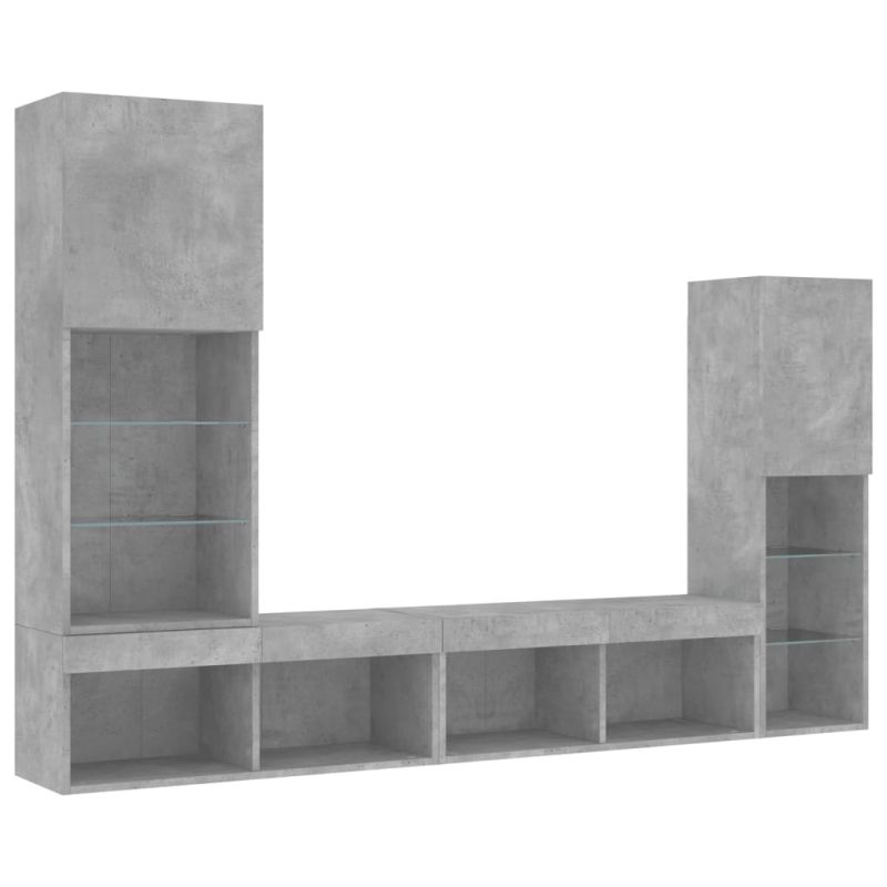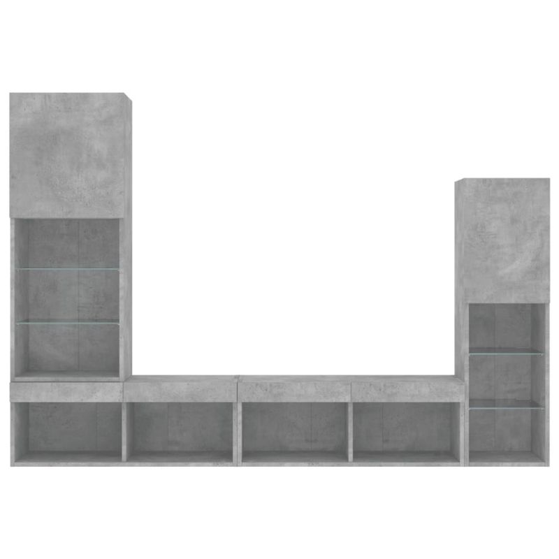 ТВ стенни модули с LED, 4 части, бетонно сиви, инженерно дърво