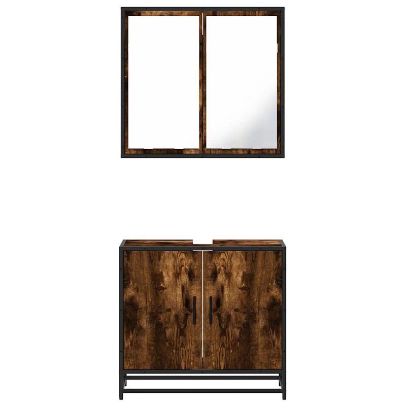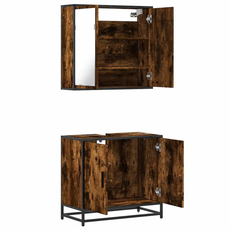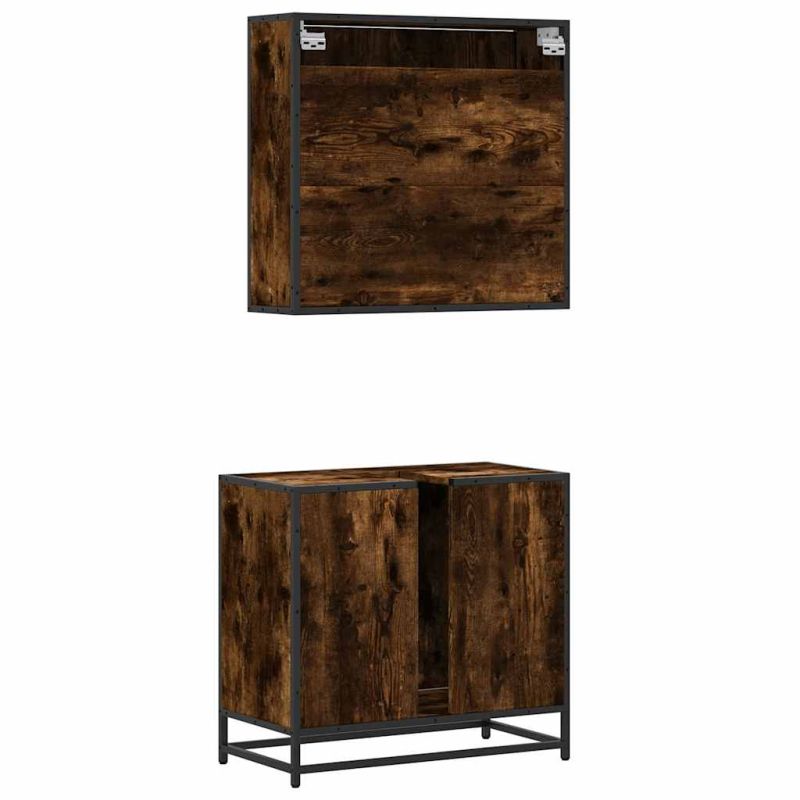 Комплект мебели за баня от 2 части, опушен дъб, инженерно дърво