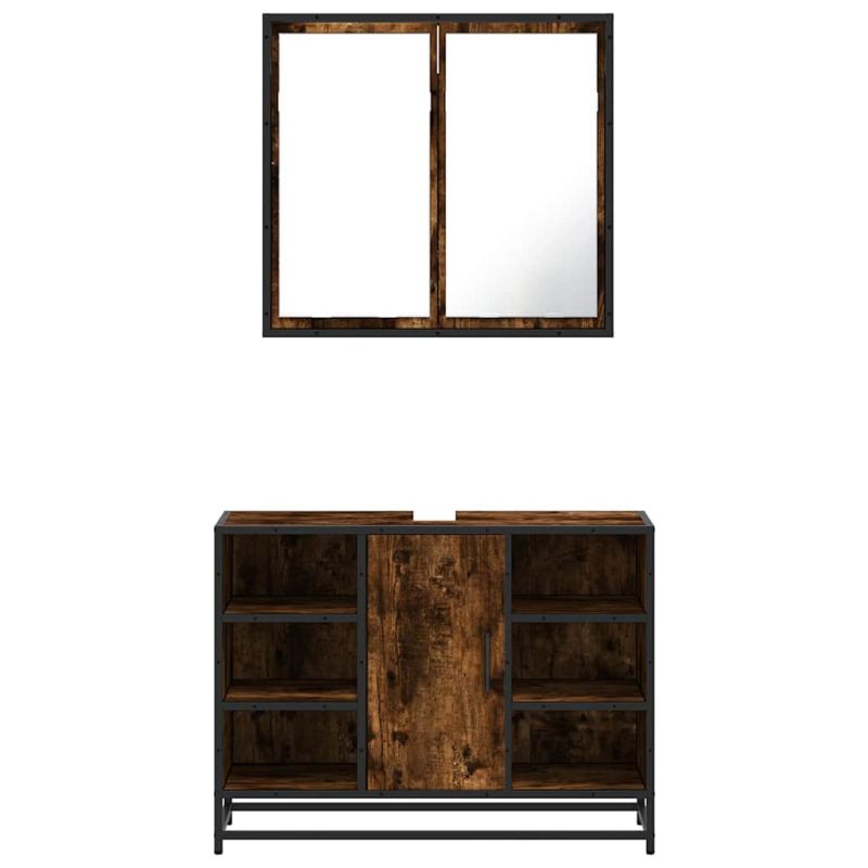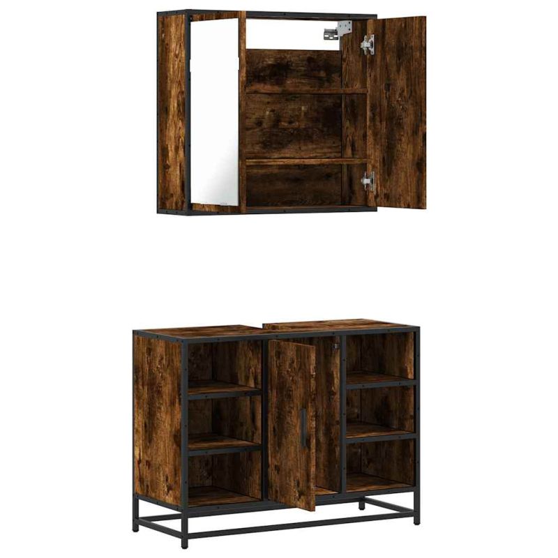 Комплект мебели за баня от 2 части, опушен дъб, инженерно дърво