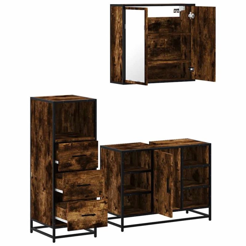 Комплект мебели за баня от 3 части, опушен дъб, инженерно дърво