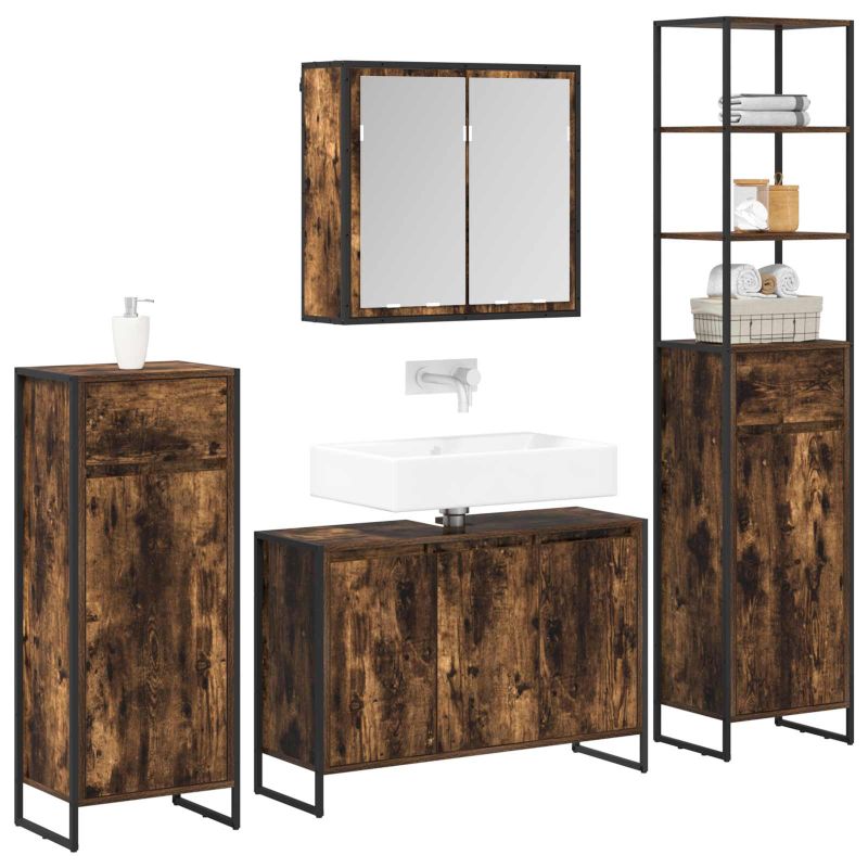 Този комплект за баня е олицетворение на съвременния стил. Съчетава функция и визия по елегантен начин. Подходящ е за градски жилища и предлага практично решение за съхранение с елегантния си дизайн. Инженерната дървесина и стоманата му придават здравина и му осигуряват модерен вид, който прекрасно допълва интериора на банята. Премиум материали: Здравата инженерна дървесина и стоманената рамка правят този комплект супер дълговечен. Тези материали са устойчиви на влажността в банята и запазват вида му безупречен. Осигуряват стабилност за натоварвания, а финалният слой допринася за естествения и блестящ вид. Универсална полезност: С плоските рафтове за всякакви баня аксесоари, предлага достатъчно пространство. Огледалото добавя допълнителен стил, докато изпълнява практична функция за ежедневната грижа. Дизайн среща функция: Този комплект, с изчистения си модерен стил, лесно влиза в различни бани. Ефективно организира и намалява безпорядъка, а гладките линии осигуряват естетическа привлекателност и минималистичен подход. Лесна инсталация: С монтаж на стена, спестява място на пода и придава опростен вид. Инженерната дървесина осигурява здравина без да компрометира качеството. Лесна поддръжка: Поддържането на мебелите е лесно - просто избърсвай с влажна кърпа за запазване на блясъка. Избягвай агресивни химикали, за да запазиш завършека им красив през цялата година.