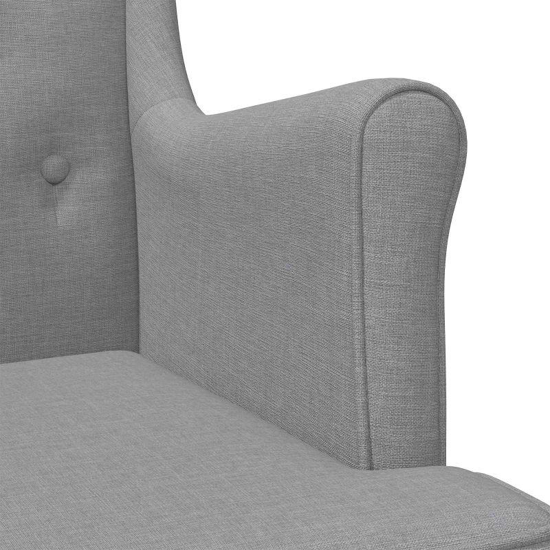 Този фотьойл е тук, за да внесе елегантност и комфорт в дома ви. С модерен дизайн и чисти линии, той се вписва идеално в всяка стая. Комбинирането на текстил и метал създава привлекателен и практичен елемент. Независимо дали четете, релаксирате или си говорите с приятели, той предлага удобно място за сядане. Издръжливи материали Изработен от качествени тъкани, фотьойлът има здрав метален каркас, който осигурява стабилност и дълготрайност. Тъкънта му добавя комфорт и е с луксозно усещане, което издържа на времето. Включени компоненти Завършен е с красива задната част и конусовидни дървени крака, които придават завършен вид и стабилност. Всеки детайл е проектиран да допълва функционалността и естетиката. Практични функции Фотьойл с махаща се седалка за лесна поддръжка. Издържливата му конструкция предлага надеждност и удобство за всяка всекидневна. Универсални приложения Подходящ за всякакви помещения, осигурява модерен акцент и е чудесен за релаксация или взаимодействие с гостите. Лесна поддръжка Можете лесно да го поддържате; просто го избърсвайте с кърпа, за да изглежда все така добре. Така запазвате свежия му вид без усилия.
