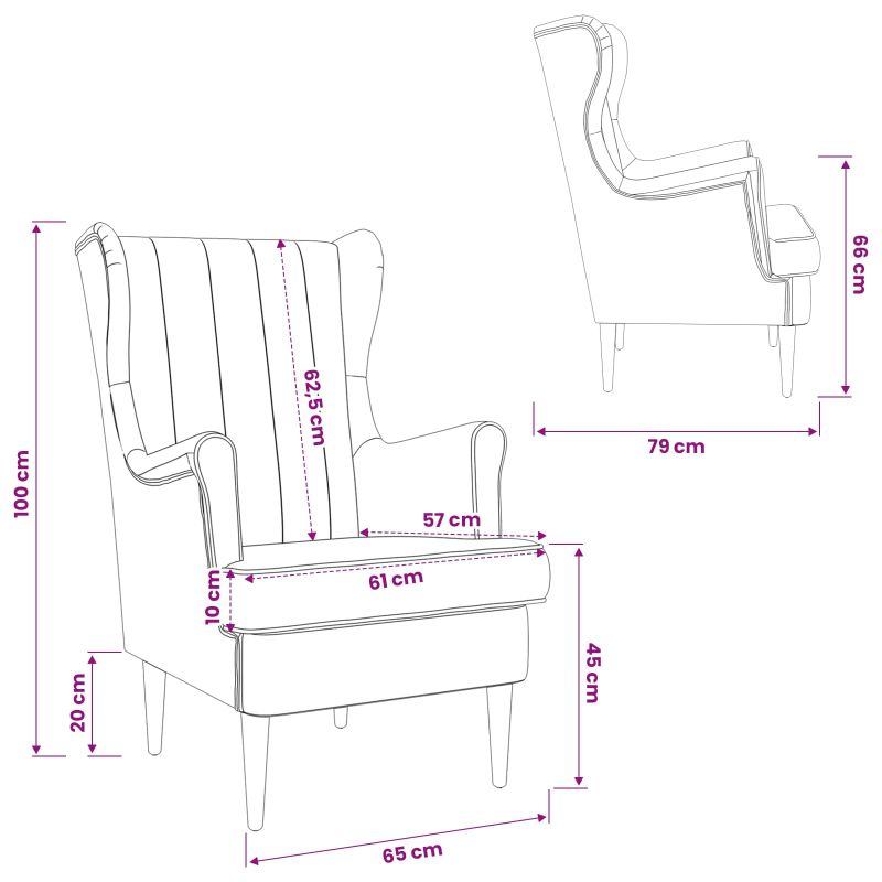 Този фотьойл перфектно съчетава простота и стил, придобавяйки луксозно усещане в дневната или спалнята. Неговият изчистен дизайн и кадифена тапицерия внасят елегантност, правейки го чудесен избор за всички, които ценят функционалността и визията на мебелите. Кадифена тапицерия: Насладете се на мекия и удобен кадифен материал, който предлага нашият фотьойл. Той внася лукс и уют, идеално за почивка. Богатата текстура лесно се комбинира с различни стилове и добавя елегантност на пространството. Здрава конструкция: С метална рамка, този фотьойл е изключително дълготраен и стабилен. Комбинацията от здрава рамка и дървени крака осигурява надеждно място за сядане, идеален за всекидневна употреба. Функционален дизайн: Отстраняемата седалка предлага практичност на фона на комфорта. Лесен е за поддържане и самостоятелно нагласяне, за да отговаря на вашите лични нужди. Универсална употреба: Идеален както за спални, така и за дневни, фотьойлът се вписва лесно в различни помещения. Неговият модерен стил е подходящ за различни интериори, предлагайки комфорт, дали четете книга или си говорите с приятели. Лесна поддръжка: Избърсвайте с суха кърпа, за да премахнете праха. Лесен е за грижа, идеален за собственици на домове, които искат стил и минимални усилия.