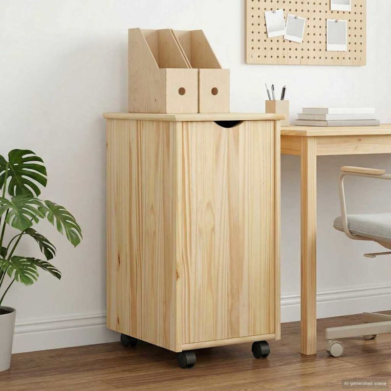 Този минималистичен шкаф съчетава просто и функционално, като привлича вниманието със своите изчистени линии. Изработен от масивна борова дървесина, той е здрав и лесен за преместене, благодарение на вградените си колела. Подходящ за кабинет или спалня, той предлага дискретно и стилно решение за съхранение. Неговият елегантен дизайн акцентира на функцията, а за вас остава само да се наслаждавате на удобството и стила в дома. Масивна борова дървесина: Шкафът е направен от солидна борова дървесина, която дава дълготрайност и топъл вид, идеален за всеки интериор. Обширно съхранение: С доста рафтове, шкафът предлага достатъчно пространство за организиране на неща - от офис консумативи до лични вещи. Изградени дръжки: Тези вградени дръжки от борова дървесина осигуряват гладък достъп и се вписват перфектно в дизайна на шкафа. Издръжливи колела: Шкафът е снабден с колела, което улеснява преместването и маневрирането в различни стаи. Матова повърхност: Матовото покритие придава на шкафа елегантен вид и намалява видимостта на отпечатъци и следи.