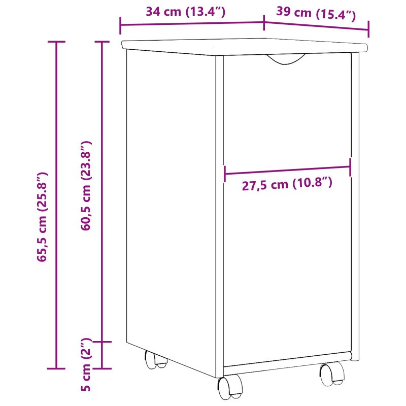 Плъзгащ кабинет с колело Кафяво 34 x 39 x 65,5 cm Солиден бор