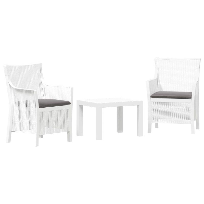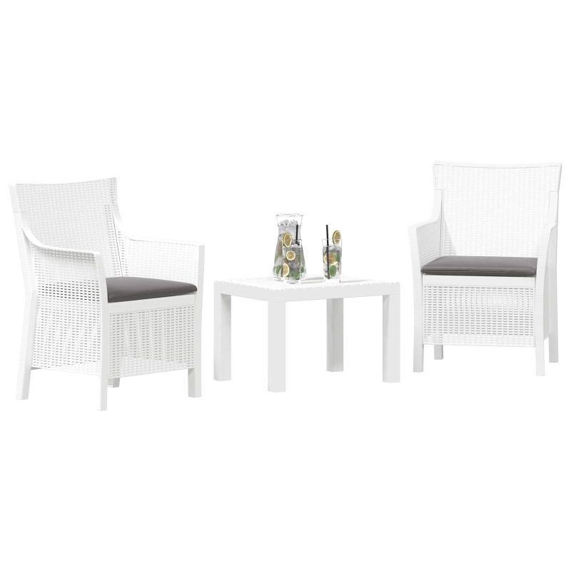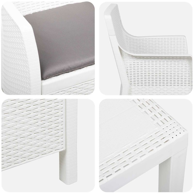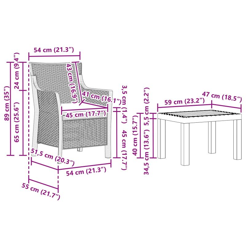 Този модерен комплект е супер стилно и изискано допълнение за всяко място навън. Идеален е за утринно кафе или вечерна релаксация, а правият му дизайн перфектно се вписва във всякакви условия. Компактен е, а включените в него фотьойли и маса, плюс две възглавници, създават уютно място за разговори и споделено време навън. Устойчиво пластмасово строителство Изработен от качествена пластмаса, комплектът е устойчив на времето и UV-устойчив, така че няма да избледнява или да се поврежда. Лек е и без ръжда, затова е идеален за открито с минимална поддръжка. Удобни седалки Комплектът идва с фотьойли и стабилни облегалки, за максимален комфорт. Подвижните пяна сидалки добавят към удоволствието от релаксацията на открито. Модернен стил С неговите чисти линии и современ вид, комплектът предлага елегантен фейс на всяко място. Минималисткият стил съчетава функционалност с красота, създавайки атмосфера, която е просто перфектна за градината или балкона. Такава ненатрапчива визия отлично се адаптира към почти всякакви декорации. Универсално използване Подходящ за всякакви открити пространства, комплектът за кафе е идеален за градини, балкони и патии. Възможността за различни конфигурации позволява да го ползвате като уютно кътче или спокойно място за разговори. Компактният му размер пък е такъв, че не пречи на пространството, а добавя стил. Лесна поддръжка Повърхността е гладка и бързо се почиства с влажна кърпа. Материалите с ниска поддръжка го правят идеалният избор за ежедневна употреба, оставяйки го винаги свеж и готов за използване.