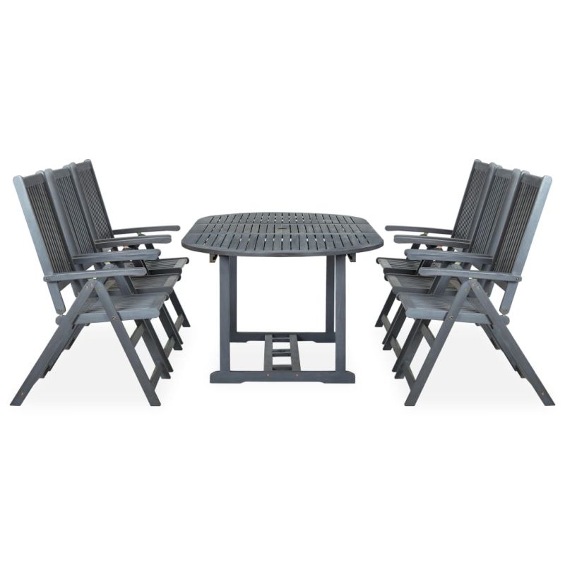 Градински трапезен комплект от 7 части, акация масив, сив