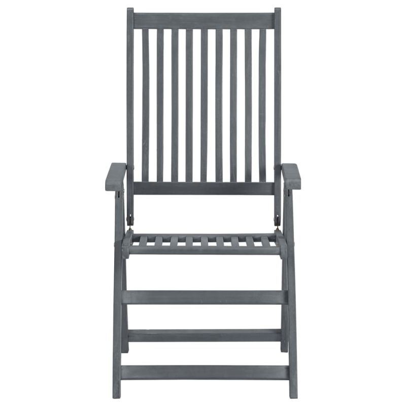 Този стилен и модерен трапезен комплект ще придаде луксозен щрих към всяка вечеря. Нашият дървен градински комплект мебели ще се превърне във фокусна точка на вашата градина, тераса или двор. Трапезният комплект е изработен от акациево дърво масив – тропическа твърда дървесина, устойчива на атмосферни влияния и издържлива на години употреба. Повърхността с маслено покритие се почиства лесно с влажна кърпа. Столовете могат да се регулират в 5 различни позиции за оптимален комфорт при седене. Масата и столовете могат да се сгъват, за да пестят място, когато не се ползват.