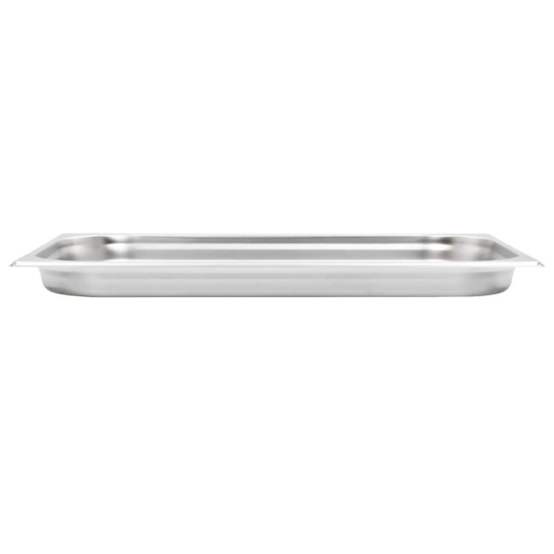 Тези стифиращи гастронорм контейнери ще бъдат чудесно допълнение към вашите кухненски съдове. Изработен от здрава неръждаема стомана, контейнерът за бен мари се отличава със здрава конструкция и се почиства лесно. Устойчивият материал предпазва тавите от драскотини и ги прави лесни за поддръжка. Тавата е с размери по стандарт гастронорм, което позволява универсална употреба и най-различни комбинации. Следователно тя ще се впише перфектно във всичките ви професионални кухненски шкафове и оборудване, като електрически сушилни, машини за миене на съдове и салатни барове. Съдовете могат да се подредят един в друга и да се приберат, за да пестят място, затова са много практични и идеални за използване в ресторанти, хотели, партита, както и у дома. Доставката включва 4 тави.