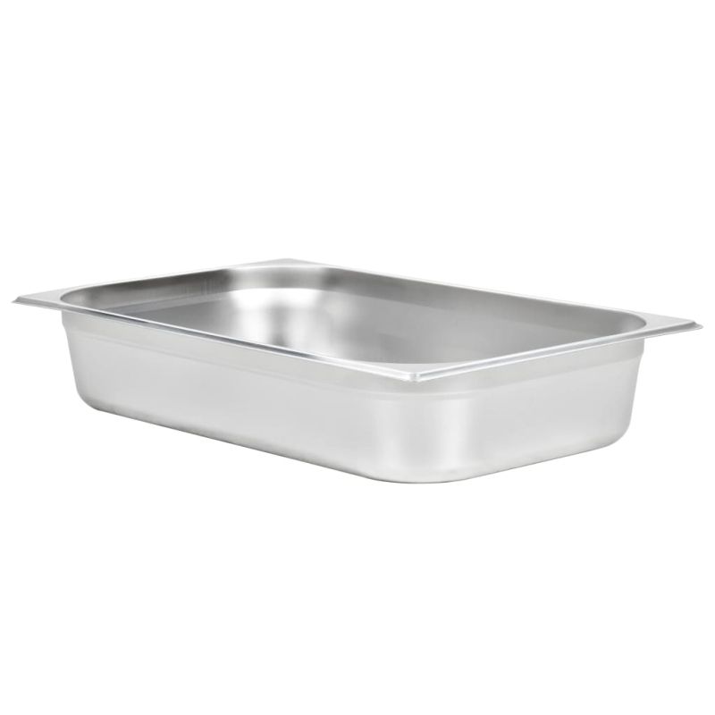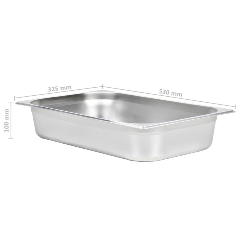 Тези стифиращи гастронорм контейнери ще бъдат чудесно допълнение към вашите кухненски съдове. Изработен от здрава неръждаема стомана, контейнерът за бен мари се отличава със здрава конструкция и се почиства лесно. Устойчивият материал предпазва тавите от драскотини и ги прави лесни за поддръжка. Тавата е с размери по стандарт гастронорм, което позволява универсална употреба и най-различни комбинации. Следователно тя ще се впише перфектно във всичките ви професионални кухненски шкафове и оборудване, като електрически сушилни, машини за миене на съдове и салатни барове. Съдовете могат да се подредят един в друга и да се приберат, за да пестят място, затова са много практични и идеални за използване в ресторанти, хотели, партита, както и у дома. Доставката включва 4 тави.