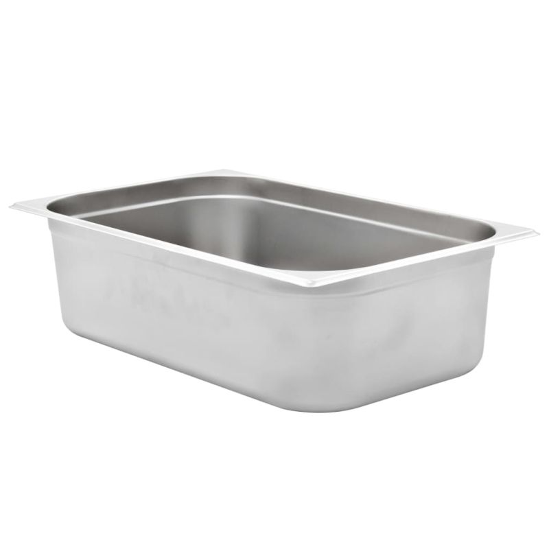 Тези стифиращи гастронорм контейнери ще бъдат чудесно допълнение към вашите кухненски съдове. Изработен от здрава неръждаема стомана, контейнерът за бен мари се отличава със здрава конструкция и се почиства лесно. Устойчивият материал предпазва тавите от драскотини и ги прави лесни за поддръжка. Тавата е с размери по стандарт гастронорм, което позволява универсална употреба и най-различни комбинации. Следователно тя ще се впише перфектно във всичките ви професионални кухненски шкафове и оборудване, като електрически сушилни, машини за миене на съдове и салатни барове. Съдовете могат да се подредят един в друга и да се приберат, за да пестят място, затова са много практични и идеални за използване в ресторанти, хотели, партита, както и у дома. Доставката включва 2 тави.