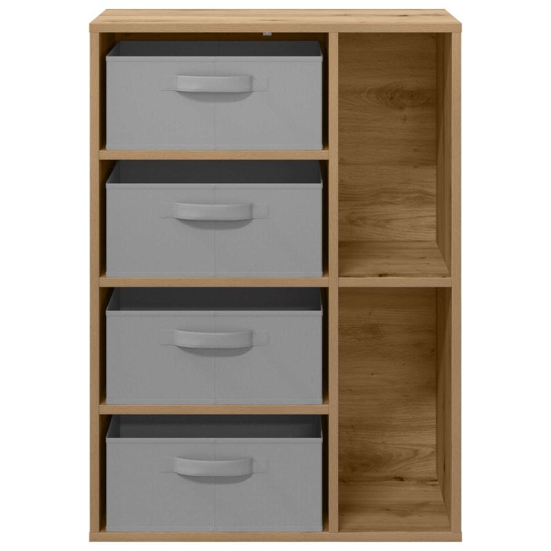 Този модерен шкаф предлага стилно и практично решение за съхранение във вашата всекидневна. С елегантния си и минималистичен дизайн, той перфектно се вписва в съвременния интериор и предлага много пространство за вашите вещи. Независимо дали ще съхранявате книги, декорации или други неща, този шкаф е както функционален, така и стилен. Изработка от инженерна дървесина Шкафът е с издръжлива конструкция и гарантира дълготрайна употреба. Гладкото му покритие го прави привлекателен избор за всякакви интериорни стилове. Рафтове от плоскости Рафтовете са стабилни и предлагат идеално място за всичките ви неща – от книги до декор. Вградени дръжки Удобно проектирани вградените дръжки придават елегантност на шкафа и запазват чистия му вид. Универсално използване Можете да го сложите навсякъде – във всекидневната, офиса или спалнята. Той е гъвкав и лесно се адаптира към различни нужди. Изисквания за сглобяване Нужна е помощ от двама души с отвертка, за да го сглобите, но след като го направите, той е готов да украси вашето пространство.