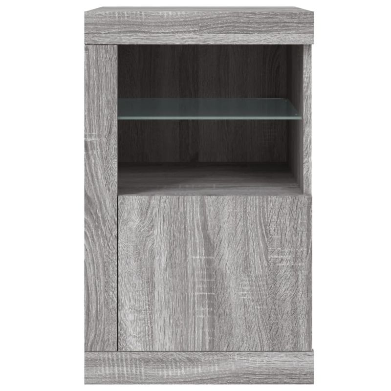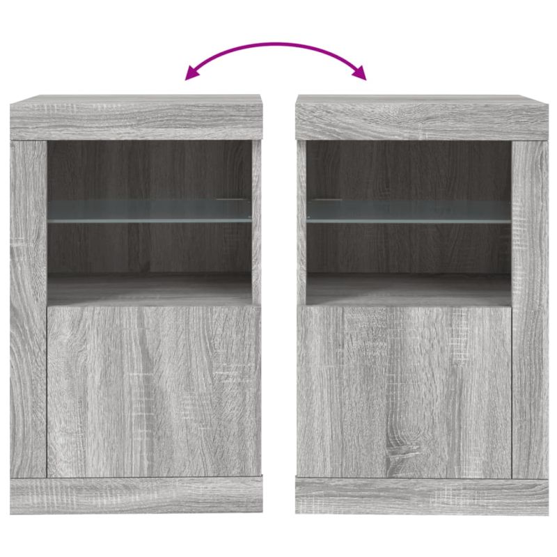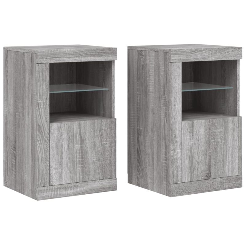 Странични шкафчета с LED, 2 бр, сив сонома, инженерно дърво