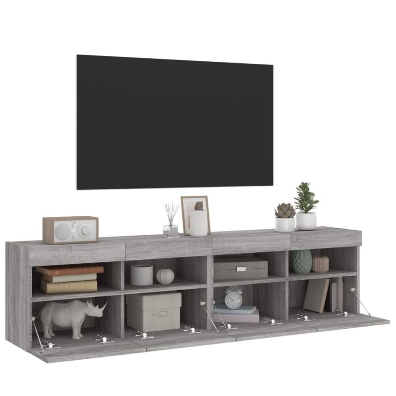 Стенни ТВ шкафове с LED лампи, 2 бр, сив сонома, 80x30x40 см