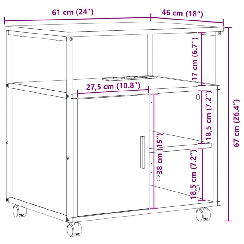 Този модернен офис шкаф е проектиран, за да се вписва идеално в съвременни работни пространства. С правоъгълната си форма лесно се носи и е приятно за работа. С елегантния си вид, той подобрява атмосферата на вашето работно място и предлага разнообразни начини за съхранение. Перфектен е за всеки, който иска да подреди всичко, докато работи от вкъщи или в зает офис. Многофункционални материали: Изработен от инженерна дървесина и здрав стоманен каркас, този шкаф е стабилен и изглежда добре. Дървото е издръжливо и лесно за поддръжка, а стоманената рамка му дава дълготрайност. Регулируеми детайли: Шкафът има региращи се рафтове за удобство при съхранение и врати с панти, които позволяват лесен достъп. С колелца е, за да може да се мести навсякъде във офиса. Интегрирани функции: Зарядната станция е готова да захранва вашите устройства без излишъци. Дизайнът му е адаптивен, с типичен за съвременния офис стил. Гъвкави приложения: Подходящ е за работа в домашни условия, в офис или даже учебни зали, с регулируемите рафтове е удобен за съхранение на всякакви нужди. Лесна поддръжка: Лесно се поддържа с малко усилия. Просто избърсвайте с мека кърпа и избягвайте сурови химикали. ВНИМАНИЕ: За да намалите риска от пожар или токов удар, прочетете всички инструкции преди да инсталирате или използвате многофункционалния контакт. ПРЕДУПРЕЖДЕНИЕ: Не използвайте контакта за свързване на устройства с мощност над 16A. Електричеството е опасно. Повреда и неправилна инсталация, употреба или промяна (замяна на отделни компоненти) могат да доведат до повреда на устройството, което да доведе до токов удар и опасност за потребителя. Ако външният гъвкав кабел или шнур е повреден, той трябва да бъде заменен изключително от производителя или неговия сервизен представител или подобно квалифицирано лице, за да се избегне опасност. USB връзката се използва само за IT устройства. Не свързвайте едно след друго. Не покривайте, когато се използва. Използвайте само в суха среда. Работете само в размотано състояние поради повишеното температурно натоварване. Изключете захранването по време на инсталиране и поддръжка.