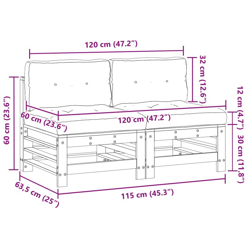 • 2 x Среден диван:57 x 63,5 x 60 см(Д x Ш x В)