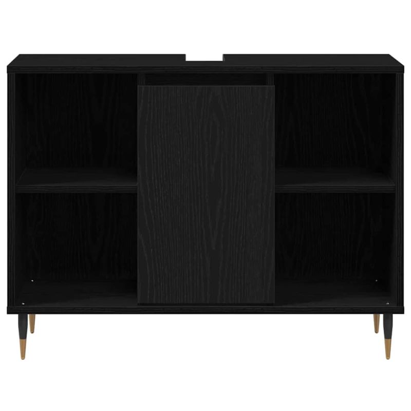 Шкаф за баня с рафт Черно 80 x 33 x 60 см Инженерно дърво