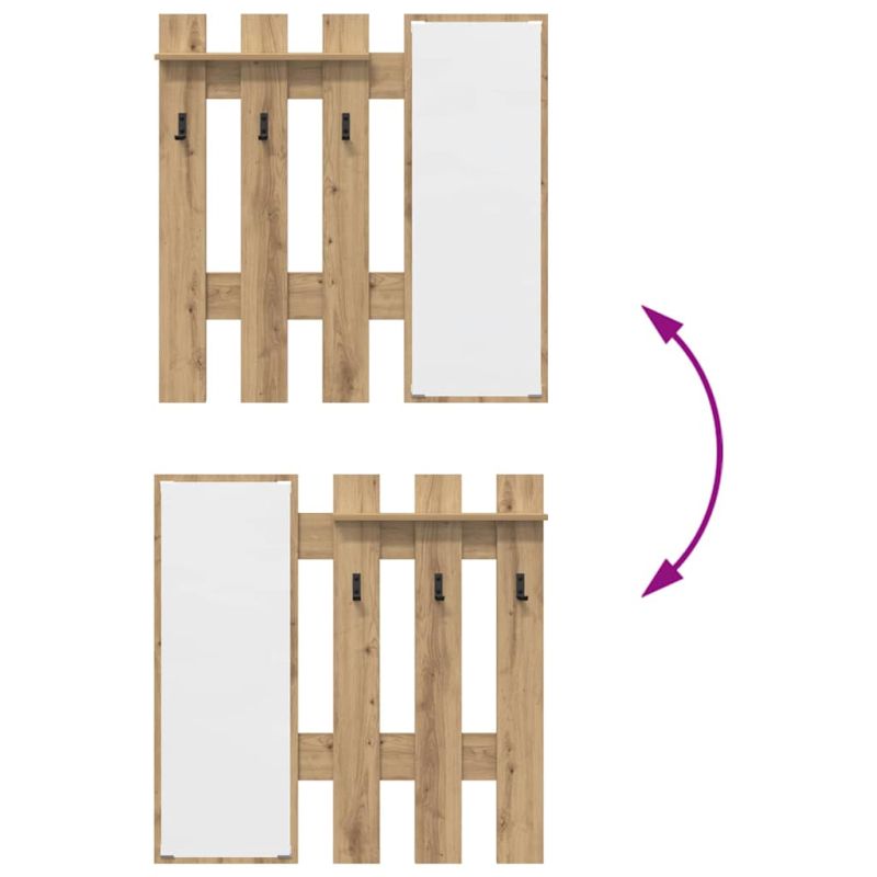 Тази стенна закачалка за палта съчетава функцията за съхранение с модерен вид, което я прави идеален избор за всеки коридор или вход. Нейната елегантна правоъгълна форма, изработена от инженерна дървесина, предлага лесен и практичен начин за организиране на палта, аксесоари и всякакви ежедневни неща. Конструкция от инженерна дървесина предлага сериозна стабилност и луксозен вид, който се вписва в съвременните интериори. Проектирана е да бъде здрава, устойчива на деформация и запазва елегантността си с времето. Множество рафтове осигуряват достатъчно пространство за организиране на палта, шапки, шалове и обувки. Тези рафтове правят закачалката за палта централно място за съхранение, задържайки всички основни вещи на ръка, докато поддържат чиста зона. Сигурен стенен монтаж осигурява стабилност и безопасност, идеална за всекидневна употреба. Закрепването на стойката за стена освобождава пространство на пода и допринася за чистия и организиран вид. Прост стил показва съвременен минимализъм, който допълва различни интериори. Нейният минималистичен дизайн излъчва стил и е красив акцент в всяко пространство. Лесна поддръжка благодарение на гладката повърхност. Поддръжката е лесна, просто забърсвай с суха кърпа, за да запазиш блясъка и чистотата в района.