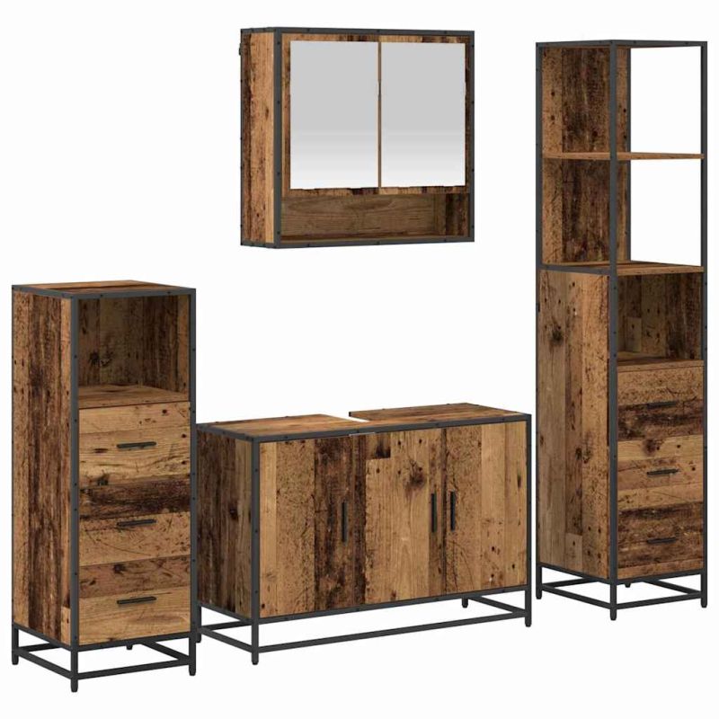 Комплект мебели за баня 4 pcs Старо дърво Инженерно дърво
