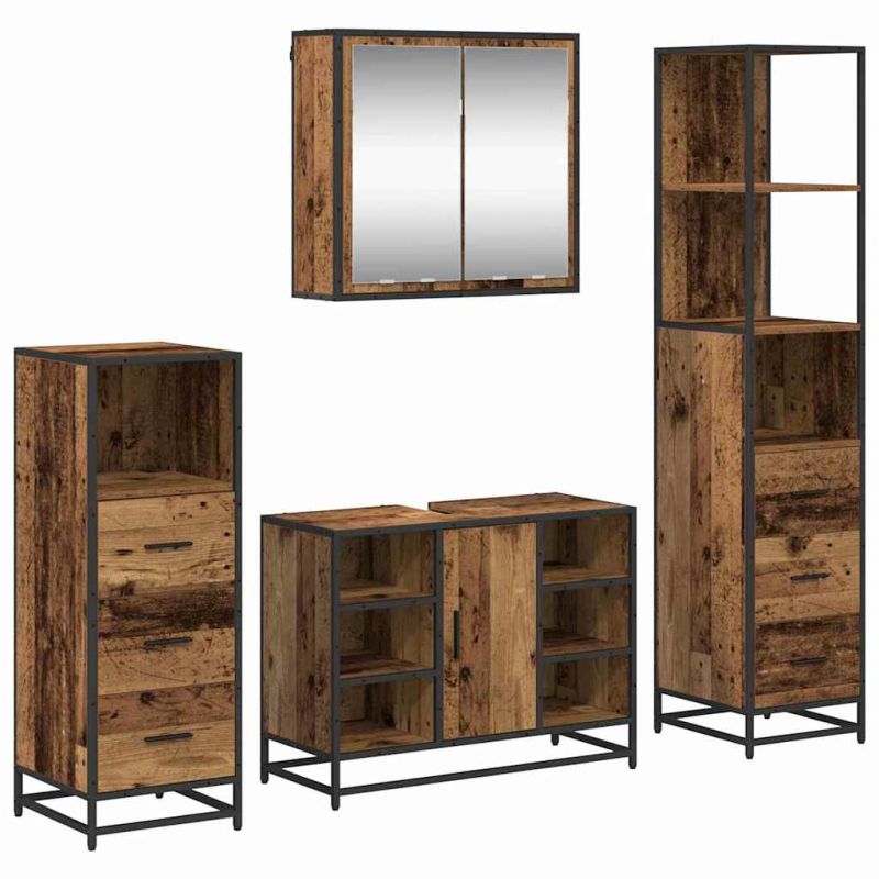 Комплект мебели за баня 4 pcs Старо дърво Инженерно дърво