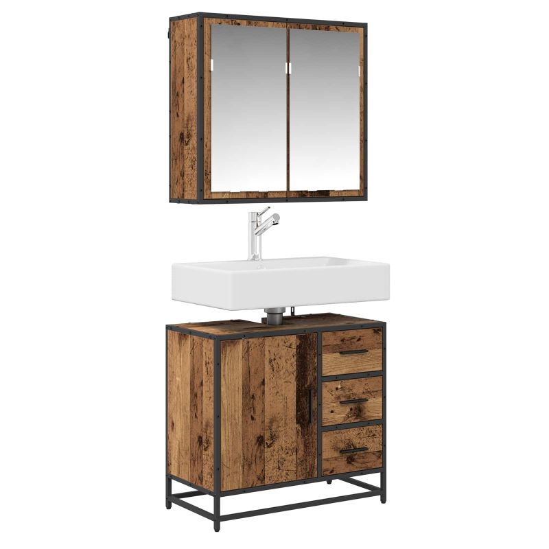 Комплект мебели за баня 2 pcs Старо дърво Инженерно дърво