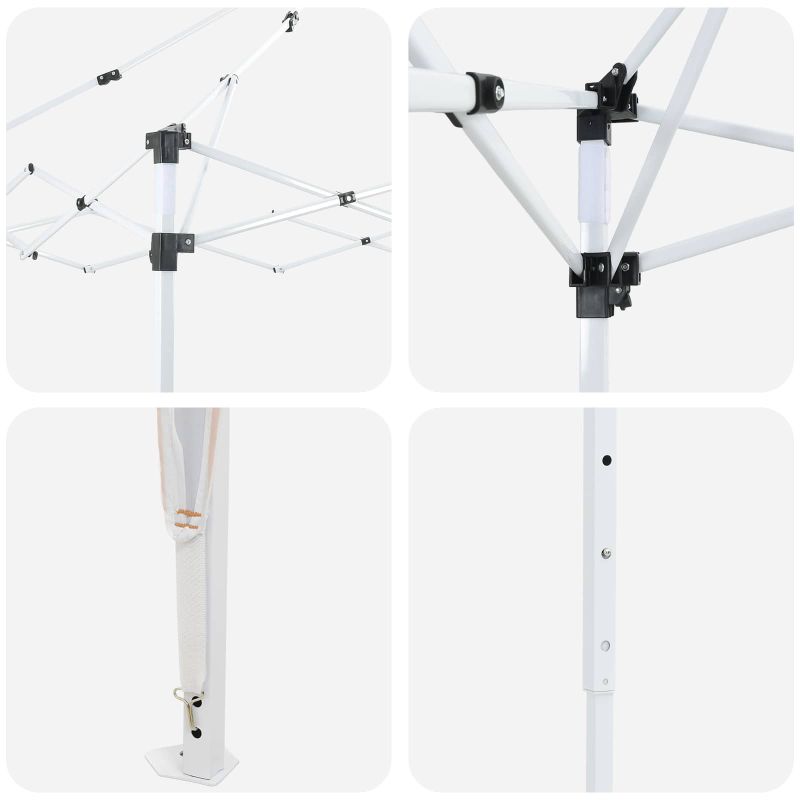 Този поп-ъп шатър е идеален за летните ви събирания, с просторен правоъгълен дизайн, който осигурява комфорт на гостите. Изработен е от устойчиви на времето материали, които предлагат защита от слънце и лек дъжд, така че да може да продължите събитието и при променливи метеорологични условия. Регулируемата височина ви позволява лесно да коригирате разположението за различни поводи, добавяйки допълнителна гъвкавост на откритите ви събития. Поп-ъп дизайн: Шатърът предлага лесен механизъм за разпъване, позволяващ бързо и безпроблемно настройване. Интуитивният му дизайн прави сглобяването много лесно, за да можете да се насладите на събитието на открито. Регулируем механизъм: С ръчния механизъм за регулиране на височината в три нива, този шатър може да се адаптира за различни поводи. Независимо дали е неформално събиране или голямо парти, регулирането на височината му добавя допълнителна гъвкавост. Прахово боядисана стоманена рамка: Основа на шатъра е здрава прахово боядисана стоманена конструкция, която осигурява стабилност и здравина. Тази конструкция гарантира спокоен ум дори при променливи условия на открито, отговаряйки на нуждите на събитието ви. Устойчив на времето: Този парти шатър е направен от водоустойчиви материали, така че да предлагат защита при лек дъжд. Освен това, funkciqta за UV защита предотвратява повреди от слънцето, намалявайки риска от избледняване за дългосрочна употреба през различни сезони. Широка употреба: Подходящ е за партита, пазари, пикници и всякакви събития на открито, осигурявайки универсално покритие. Функционалният дизайн го прави надежден избор за неформални и формални събирания. Моля, не покривайте плата, когато разтягате рамката докрай. В противен случай платът ще се скъса. Би било много по-добре да използвате куха тухла, за да стабилизирате всяко краче. Продуктът не е подходящ за метеорологични условия като силен вятър, снеговалеж и екстремни метеорологични условия. Някои части може да имат остри ръбове, носете предпазни ръкавици, ако е необходимо. Проверете дали имате всички части преди сглобяване. Дръжте деца и животни далеч от зоната за сглобяване. Уверете се, че имате достатъчно място за подреждане на частите, преди да започнете. Не сглобявайте и не разглобявайте по време на силен вятър. Дръжте всички източници на пламък и топлина далеч от тази палатка.