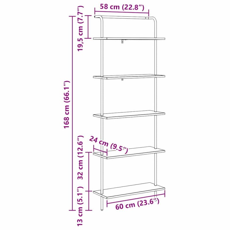 Рафт за книги Старо дърво 60 x 24 x 168 см Инженерно дърво